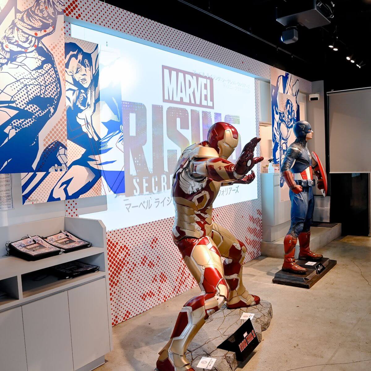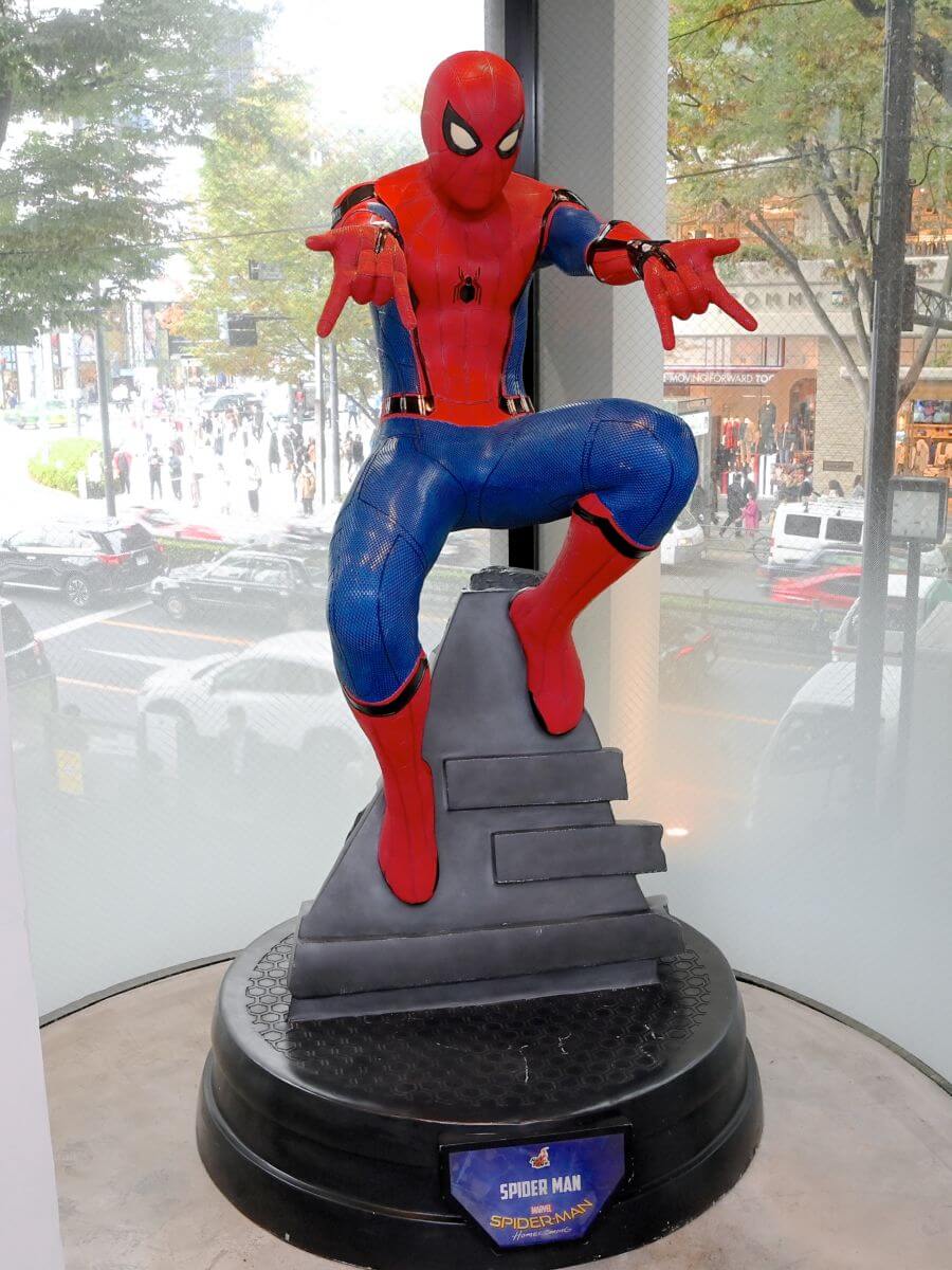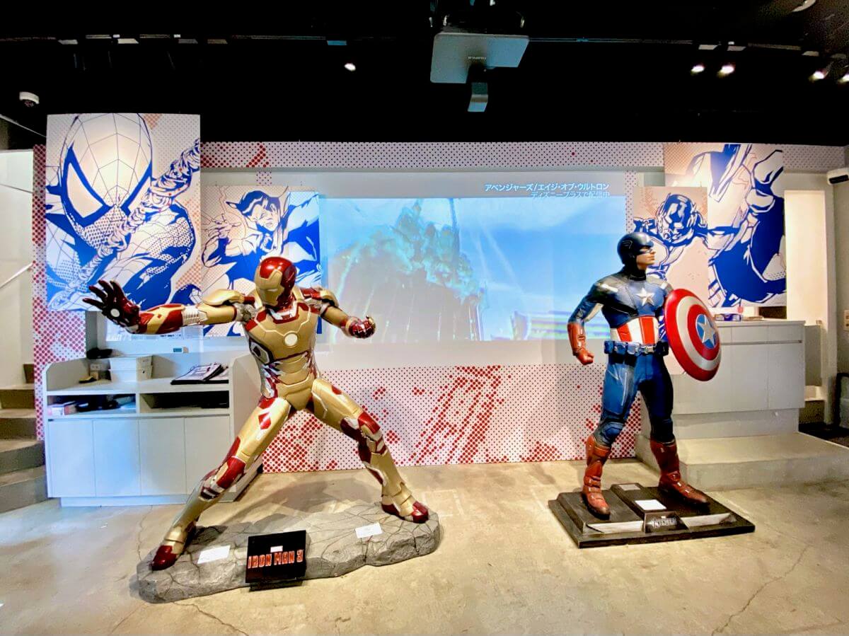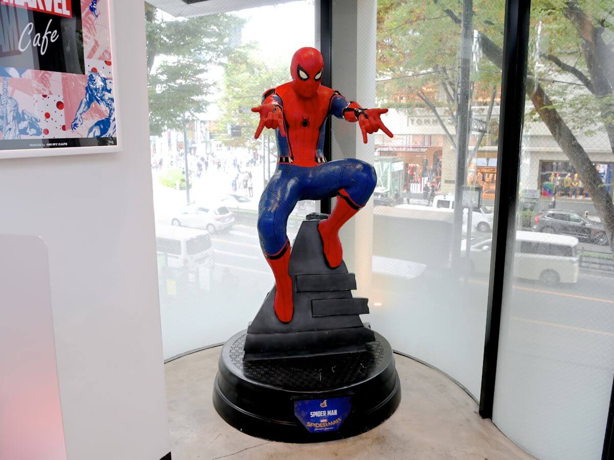 『スパイダーマン』、『アイアンマン』、『キャプテン・アメリカ』の迫力のスタチューが店内に設置されています。