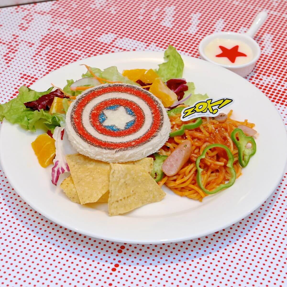 キャプテン・アメリカの盾をモチーフにしたパンが鮮やかなメニュー☆