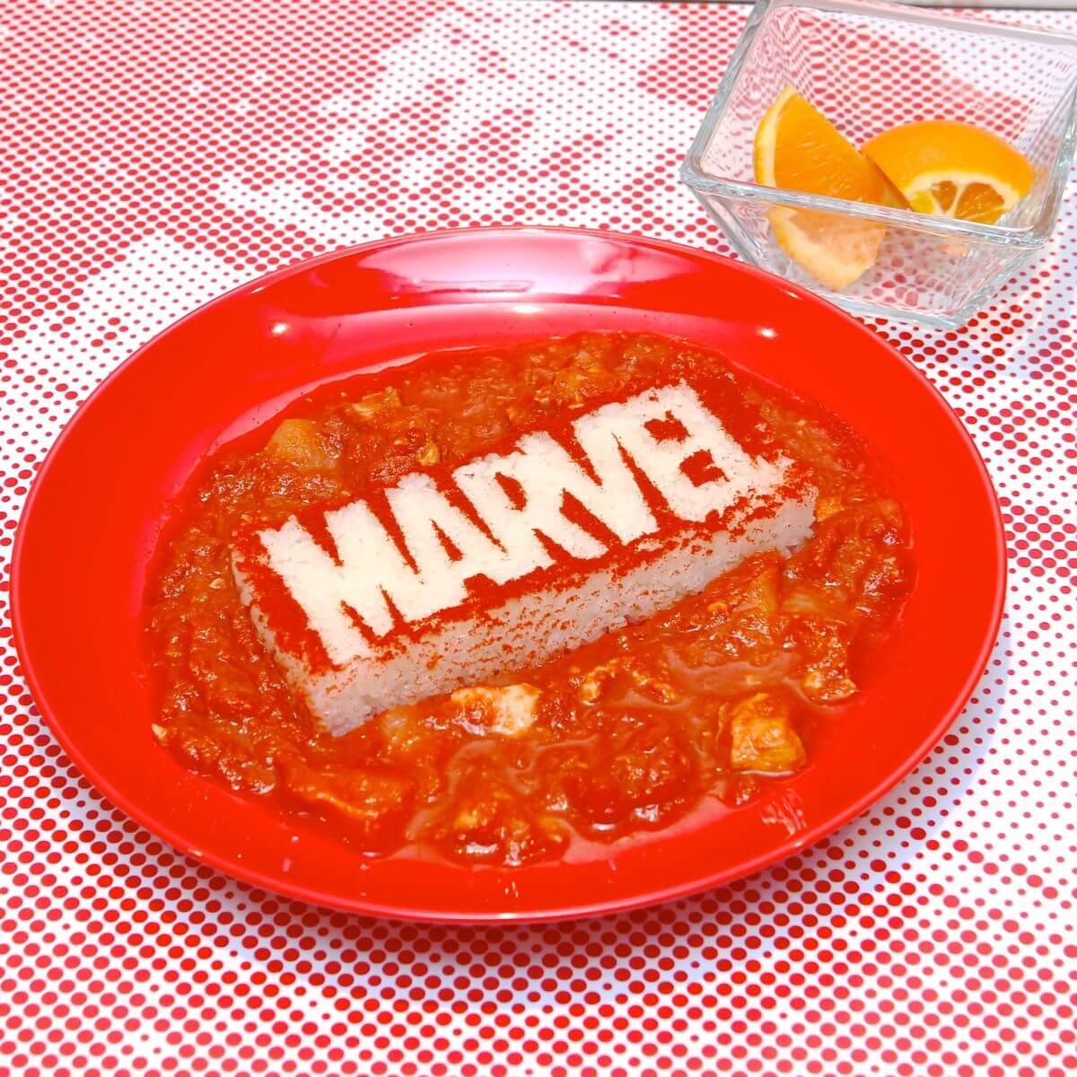 『MARVEL』ロゴがパプリカパウダーで表現された、映える真っ赤なメニューです☆