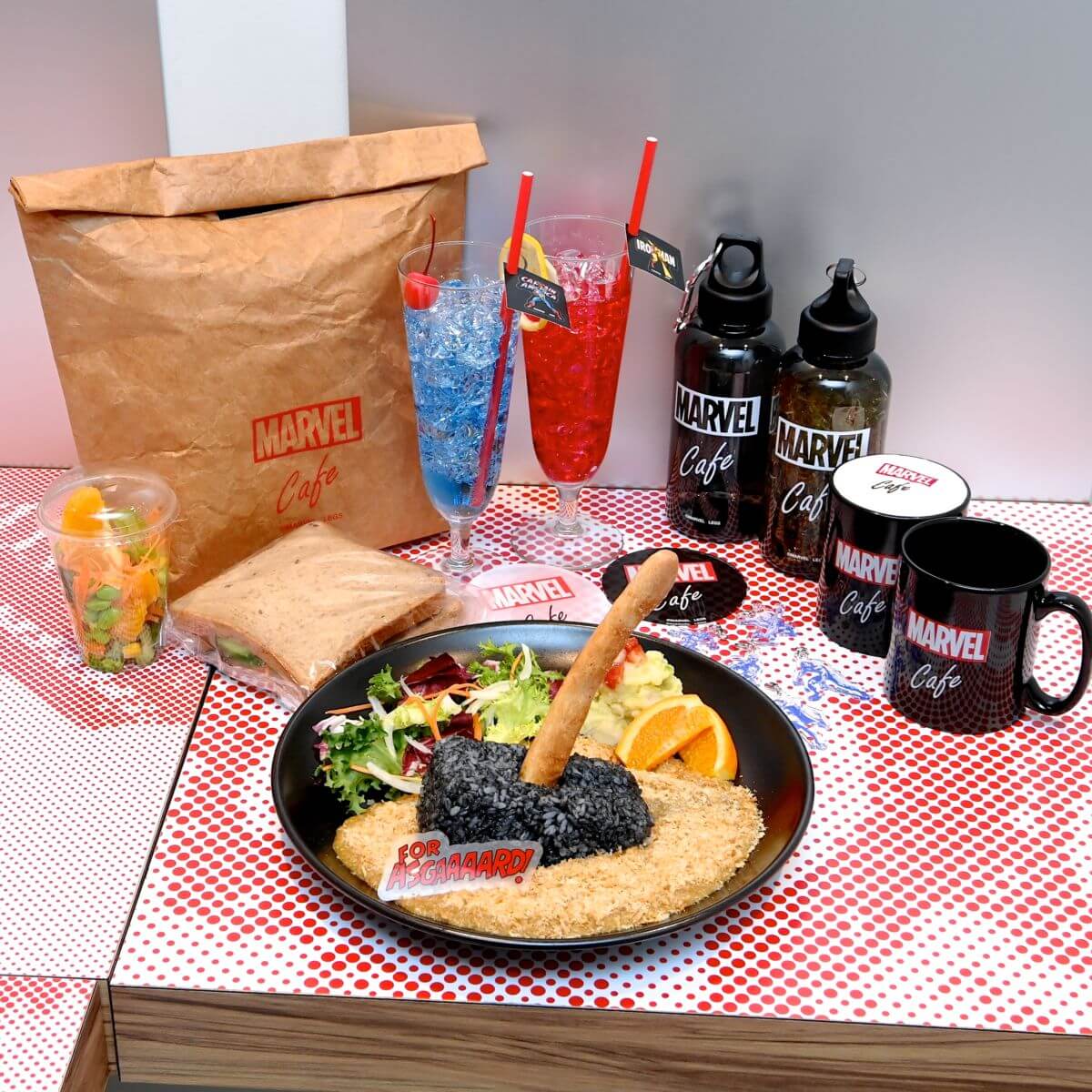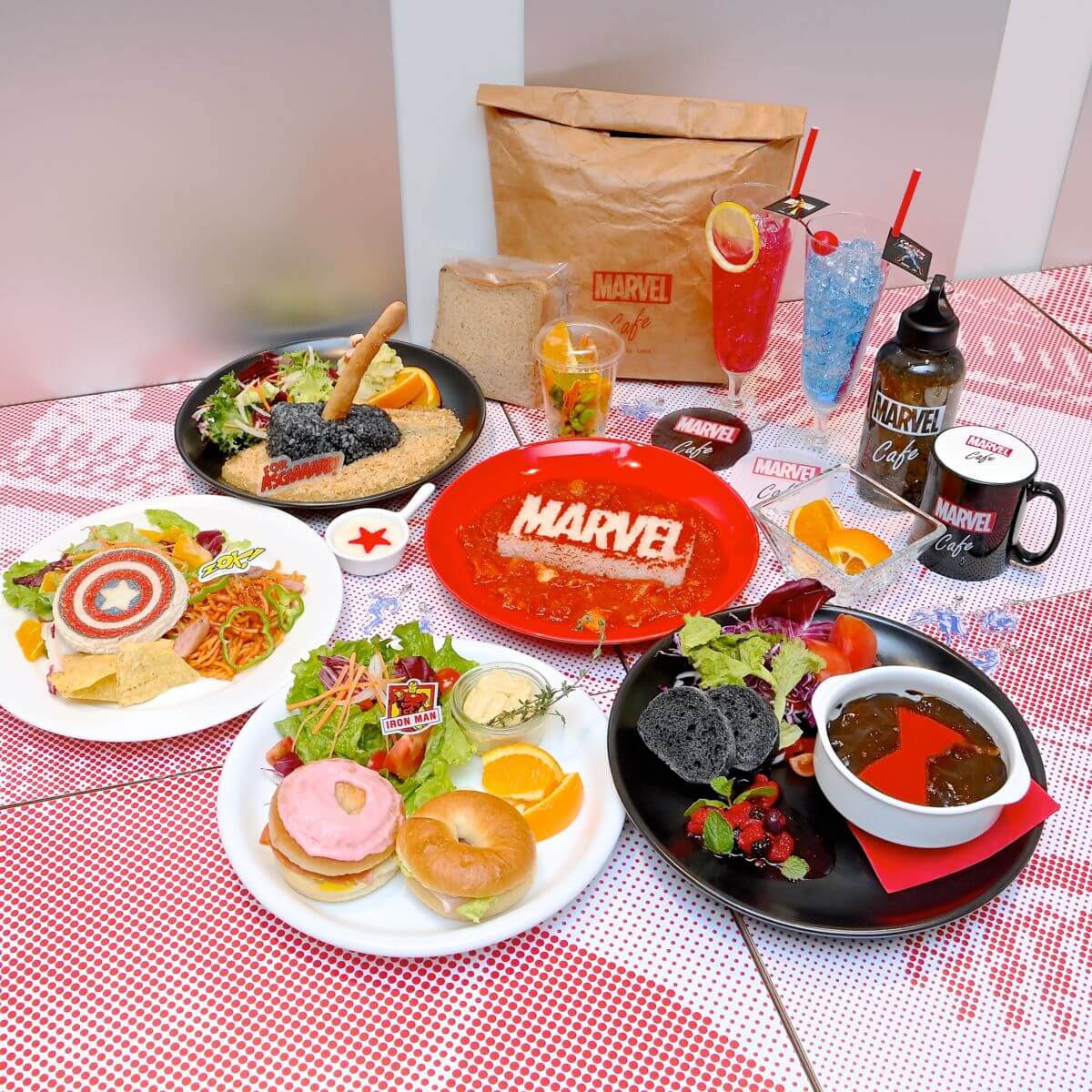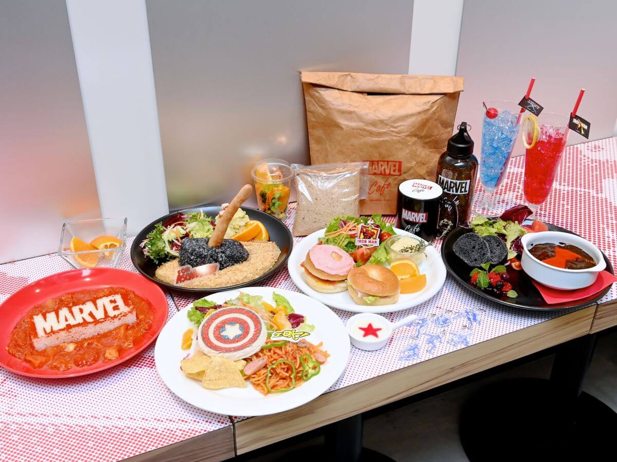 カフェメニューは、『スパイダーマン』、『アイアンマン』、『キャプテン・アメリカ』、『マイティ・ソー』、『ブラック・ウィドウ』などの世界を表現したメニューを提供。