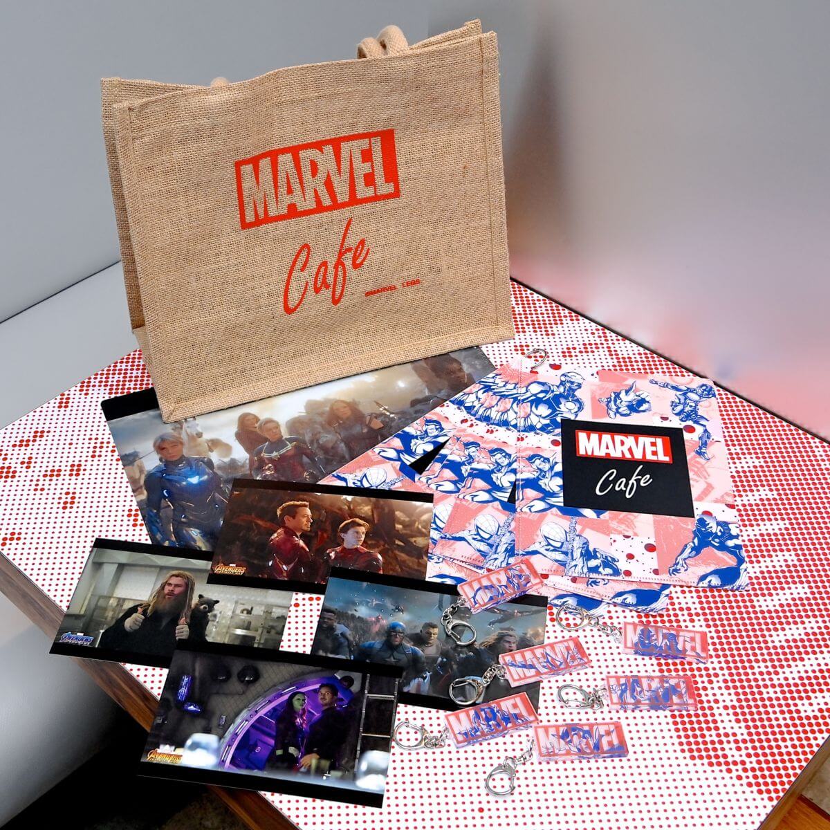 マーベルのヒーローたちにインスパイアされたメニューに加え、カフェオリジナルグッズも販売。