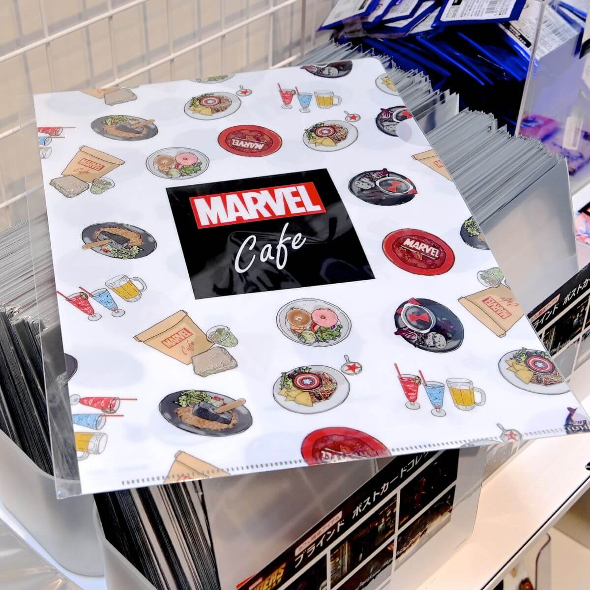 マーベルカフェのロゴがあしらわれたクリアファイル。