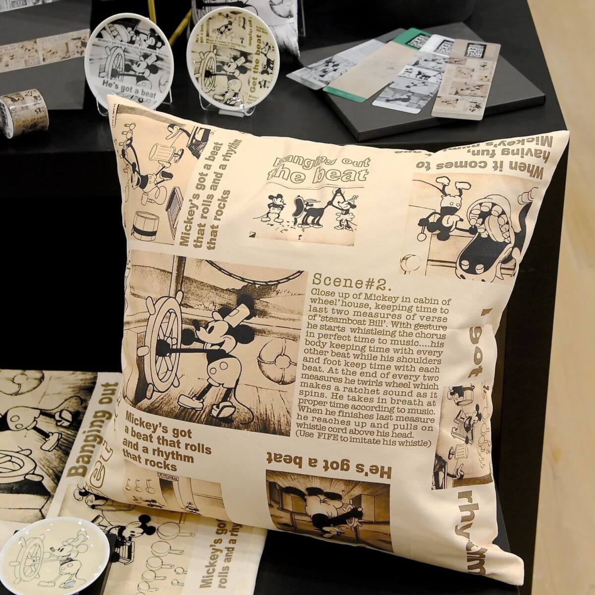 『蒸気船ウィリー』の様々なシーンを切り取ったグッズ。