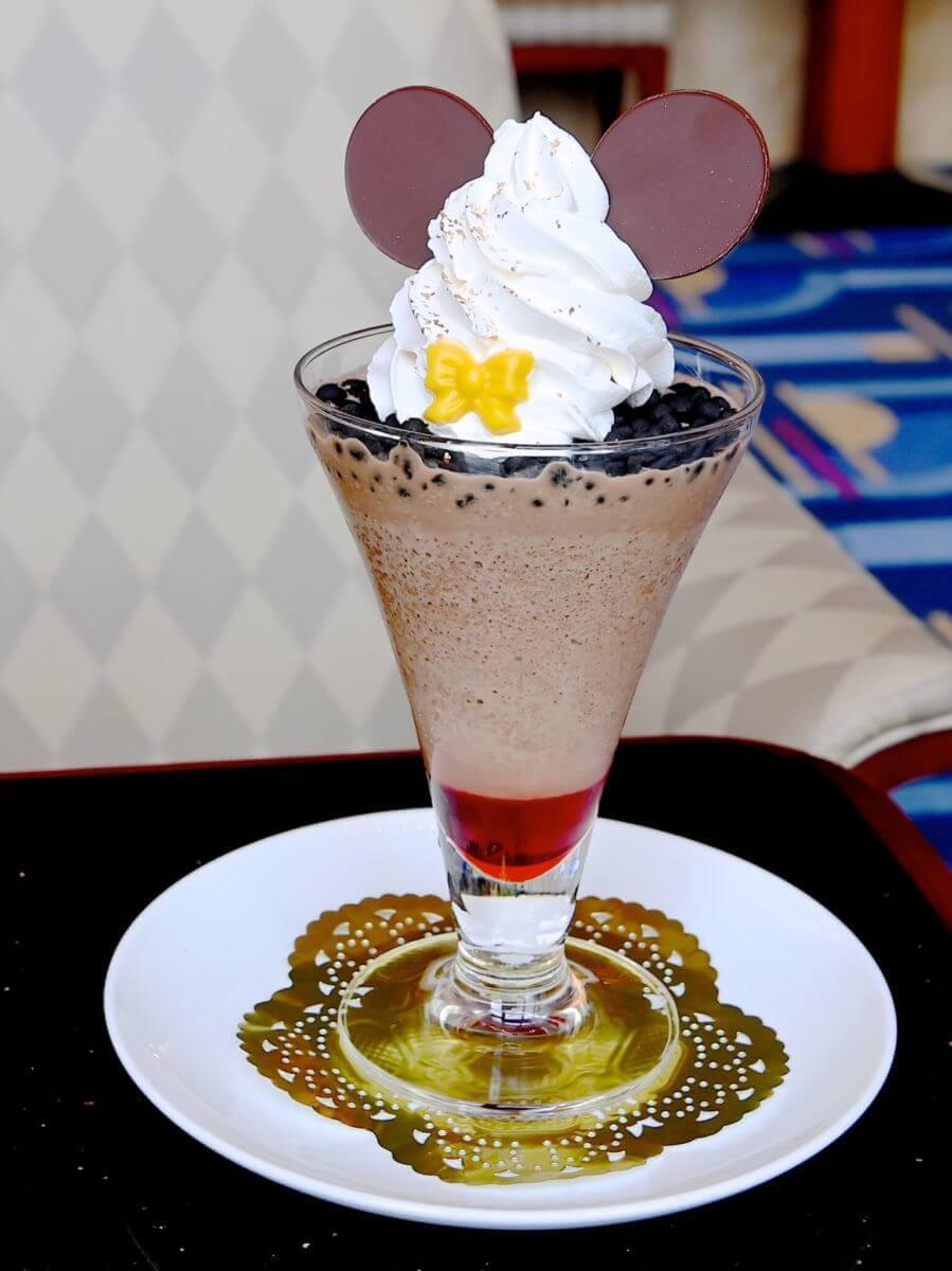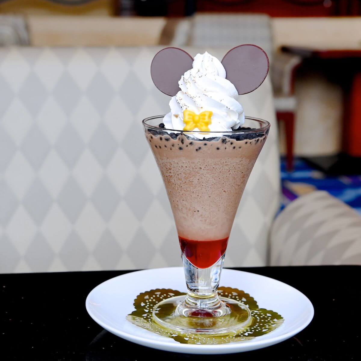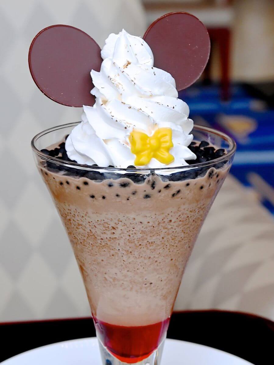 「ミッキーマウス」の耳に見立てたチョコレートがトッピングされたスペシャルドリンク。