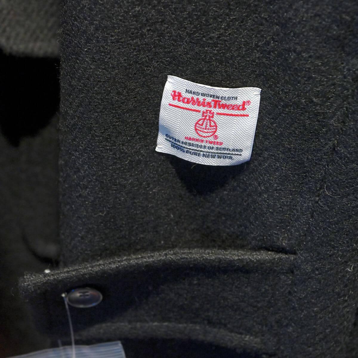 袖に「ハリスツイード(Harris Tweed)」のロゴが貼られています。