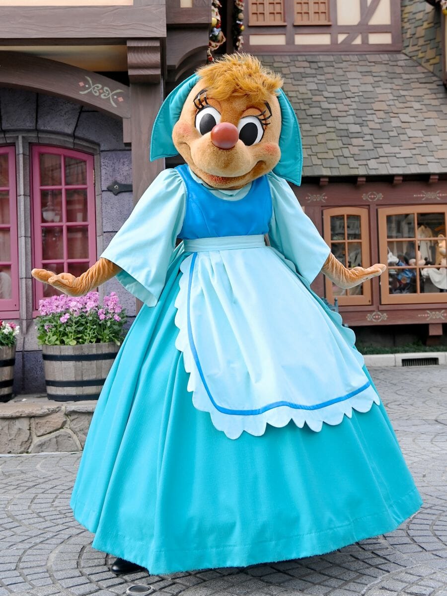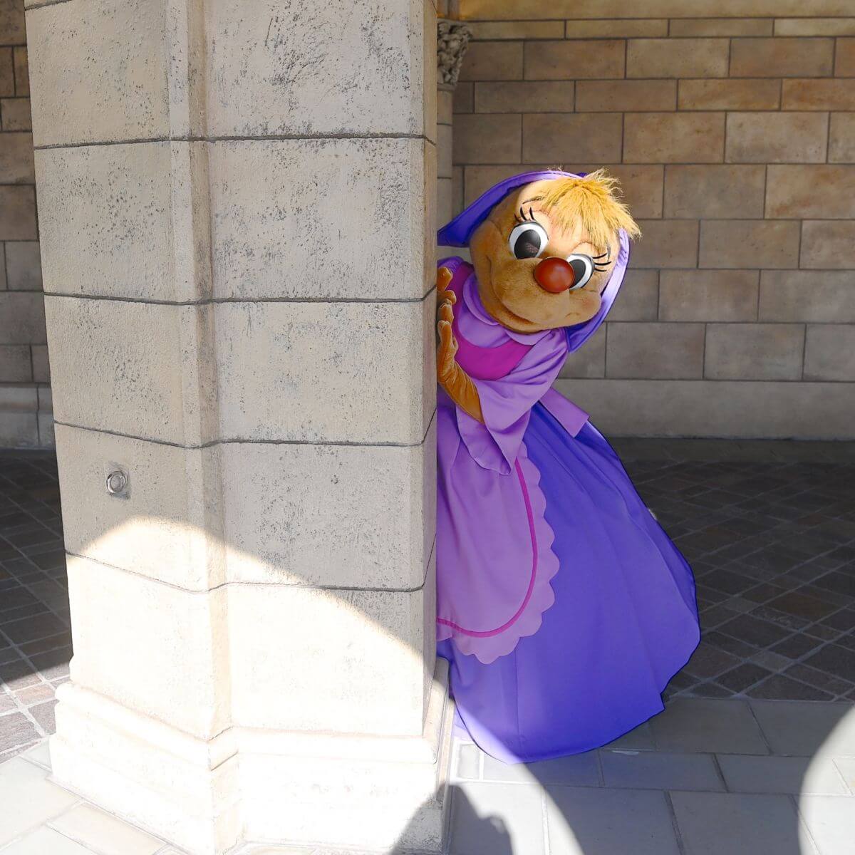 シンデレラ城にあるアトラクション「シンデレラのフェアリーテイル・ホール」前でご挨拶してくれた「スージー」と「パーラ」