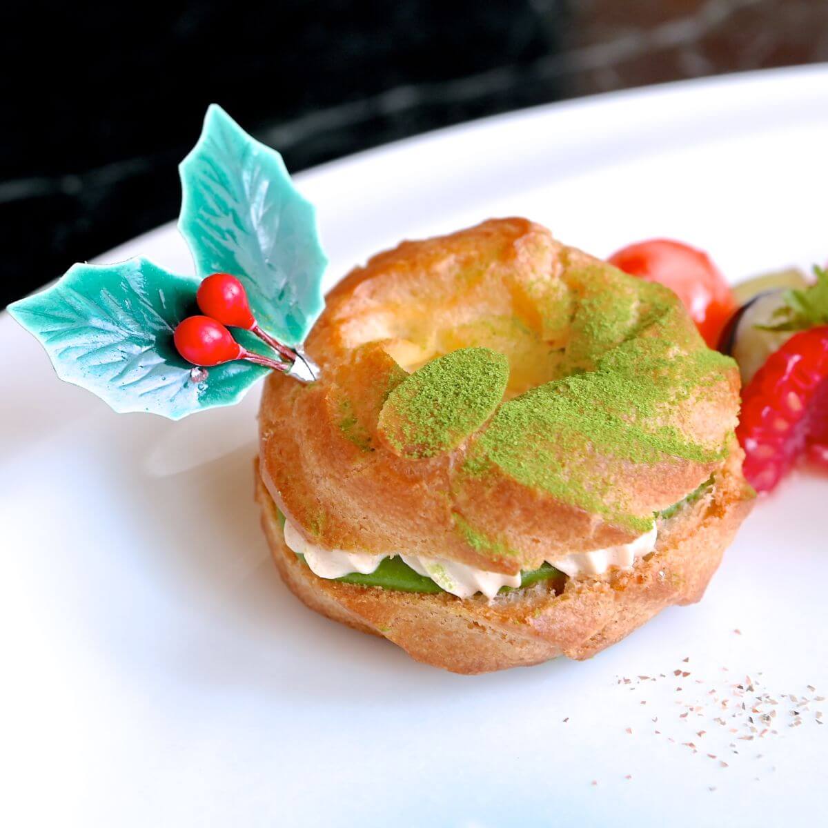 クリスマスのリースをイメージしたパリブレスト。