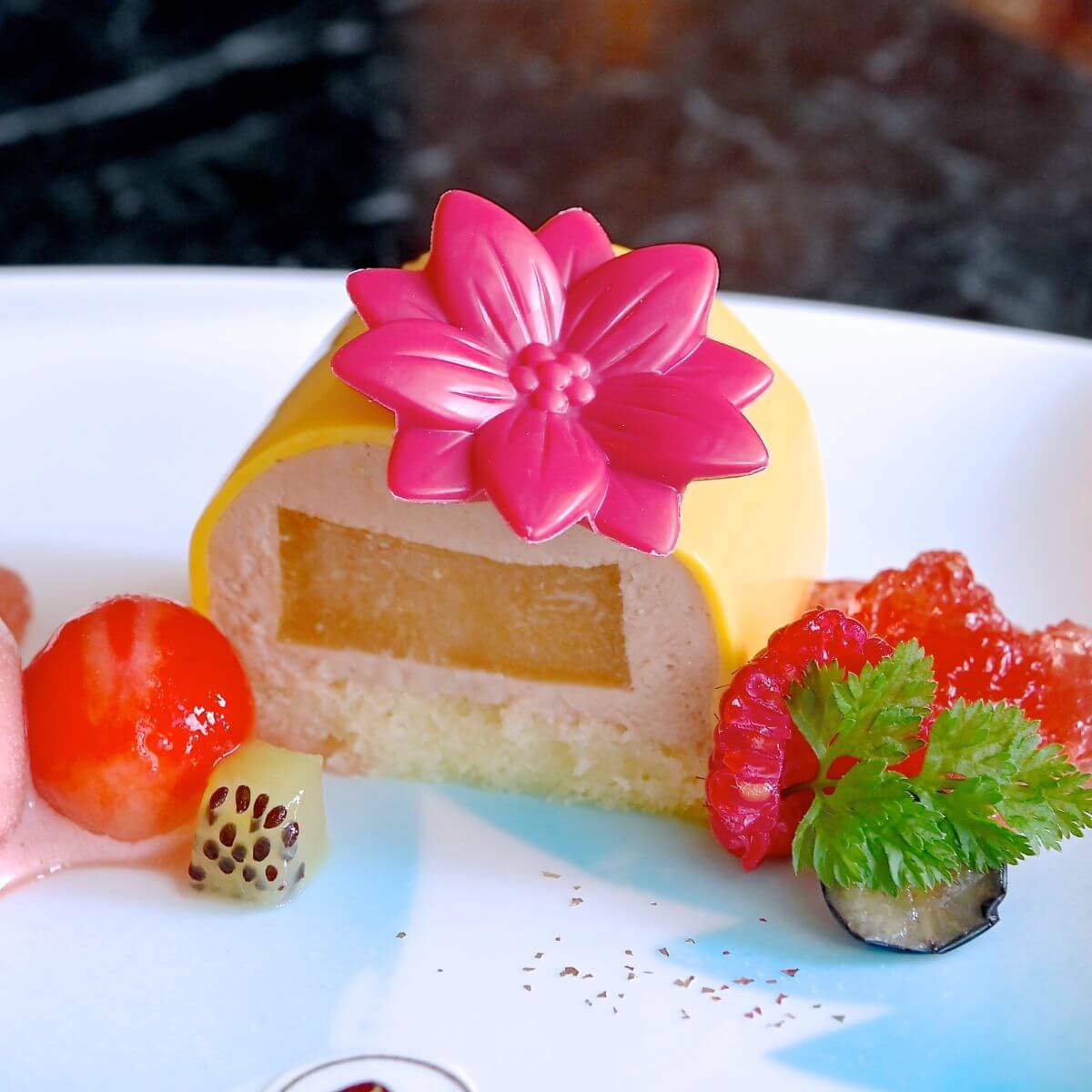 アプリコットとパッションフルーツ、マンゴーのゼリーが入っています。