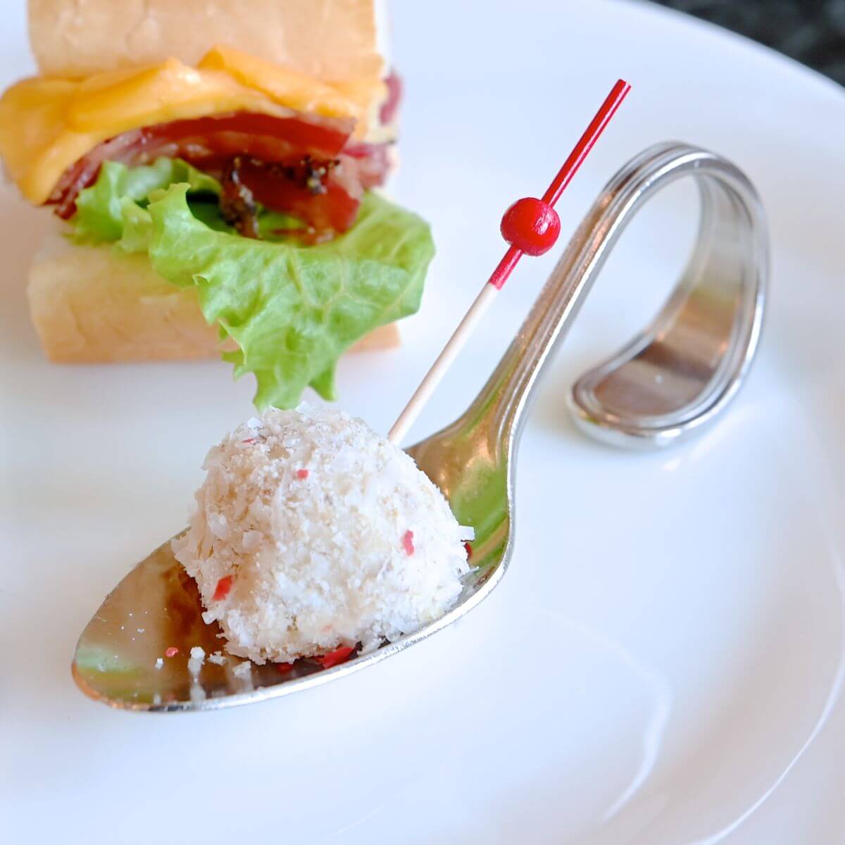 一口サイズがかわいいナッツとクリームチーズのスノーボール。