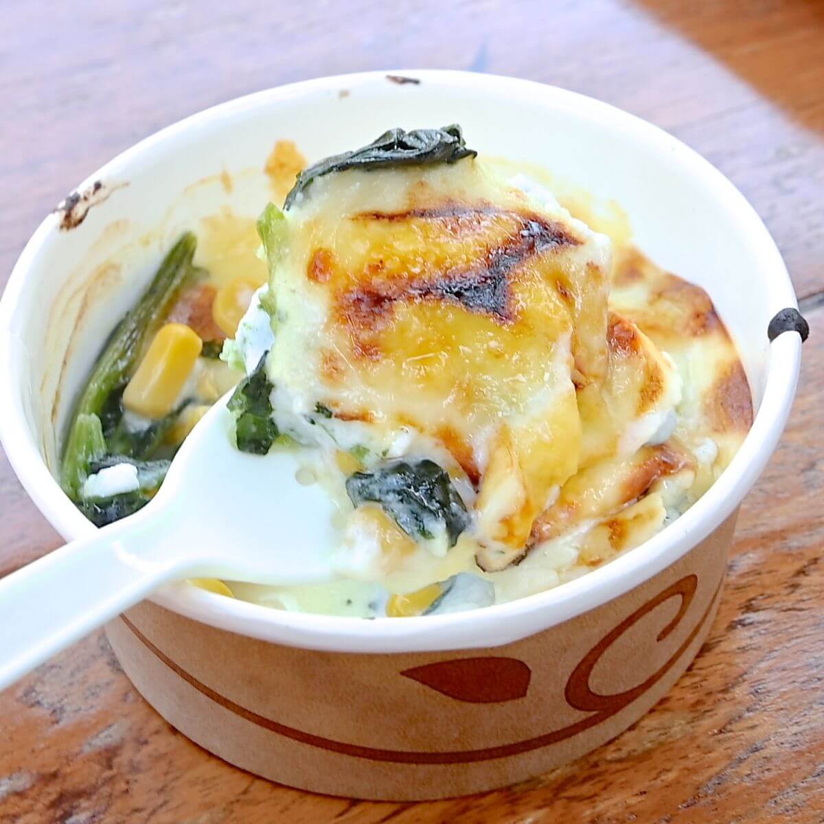 やさしい味付けのグラタンには、ほうれん草とコーンが入っています☆