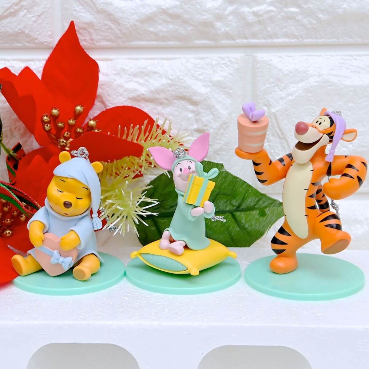クリスマス当日の朝、パジャマ姿で起きてきたキャラクターたちがクリスマスプレゼントを見つけて喜んでいる姿がオーナメントフィギュアになりました。