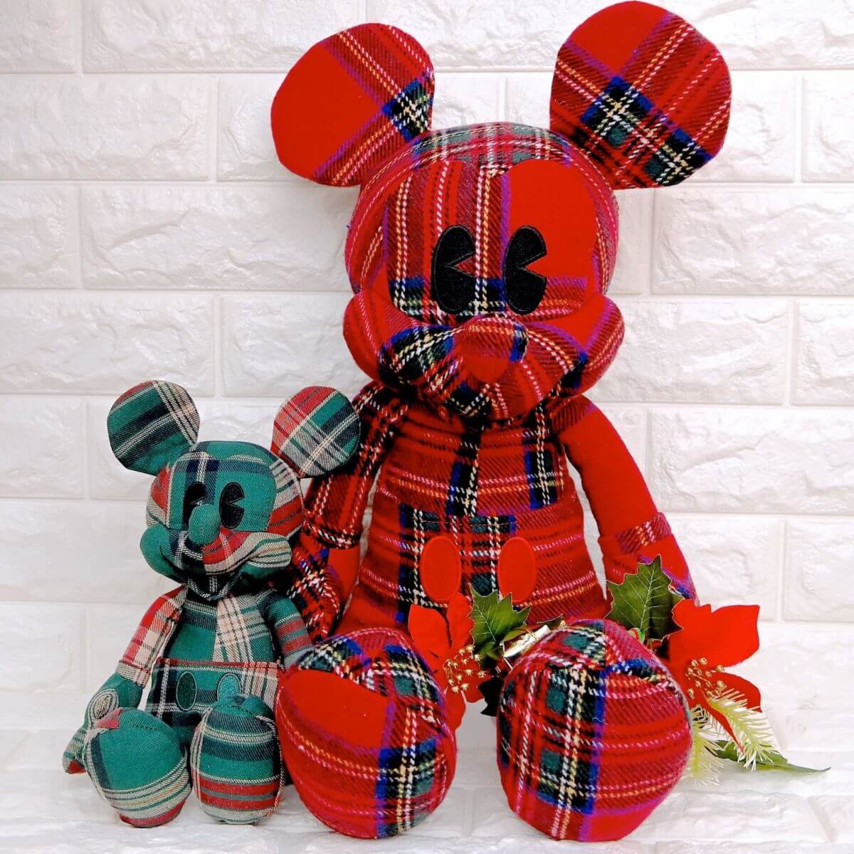 「LAST賞」と「当たり!」くじのミッキーマウスぬいぐるみはクリスマスらしいチェック柄で、このシーズンに飾りたいぬいぐるみです☆
