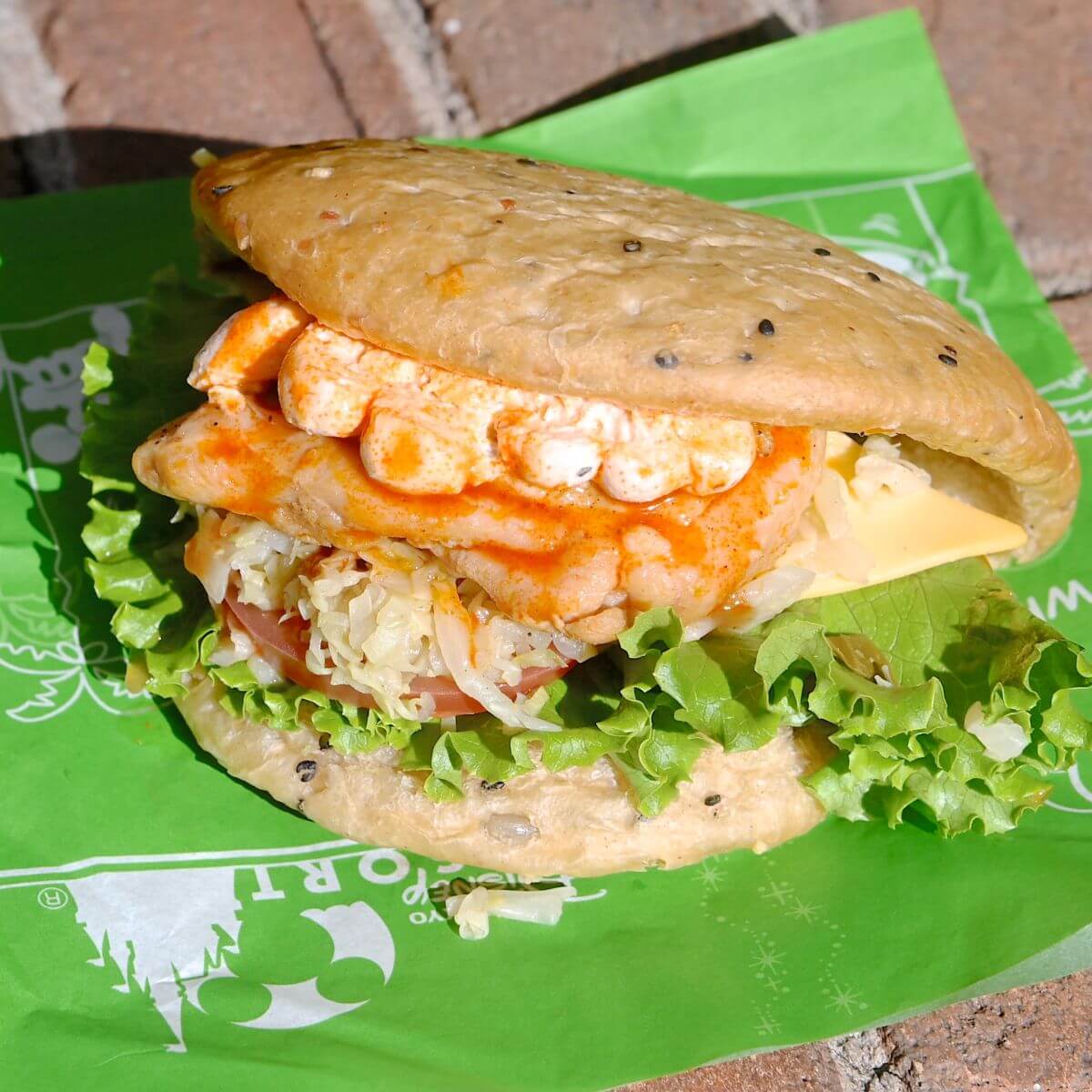ザワークラウト(キャベツの漬物)とピリ辛なバッファローソースが効いたサンドウィッチです。