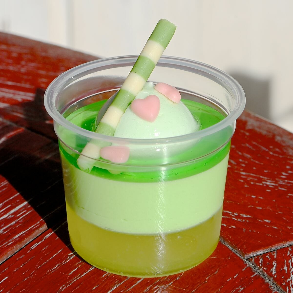 記念撮影をしていた野原のような、鮮やかなグリーンと爽やかな味わいのマスカットムース&レモンゼリー。