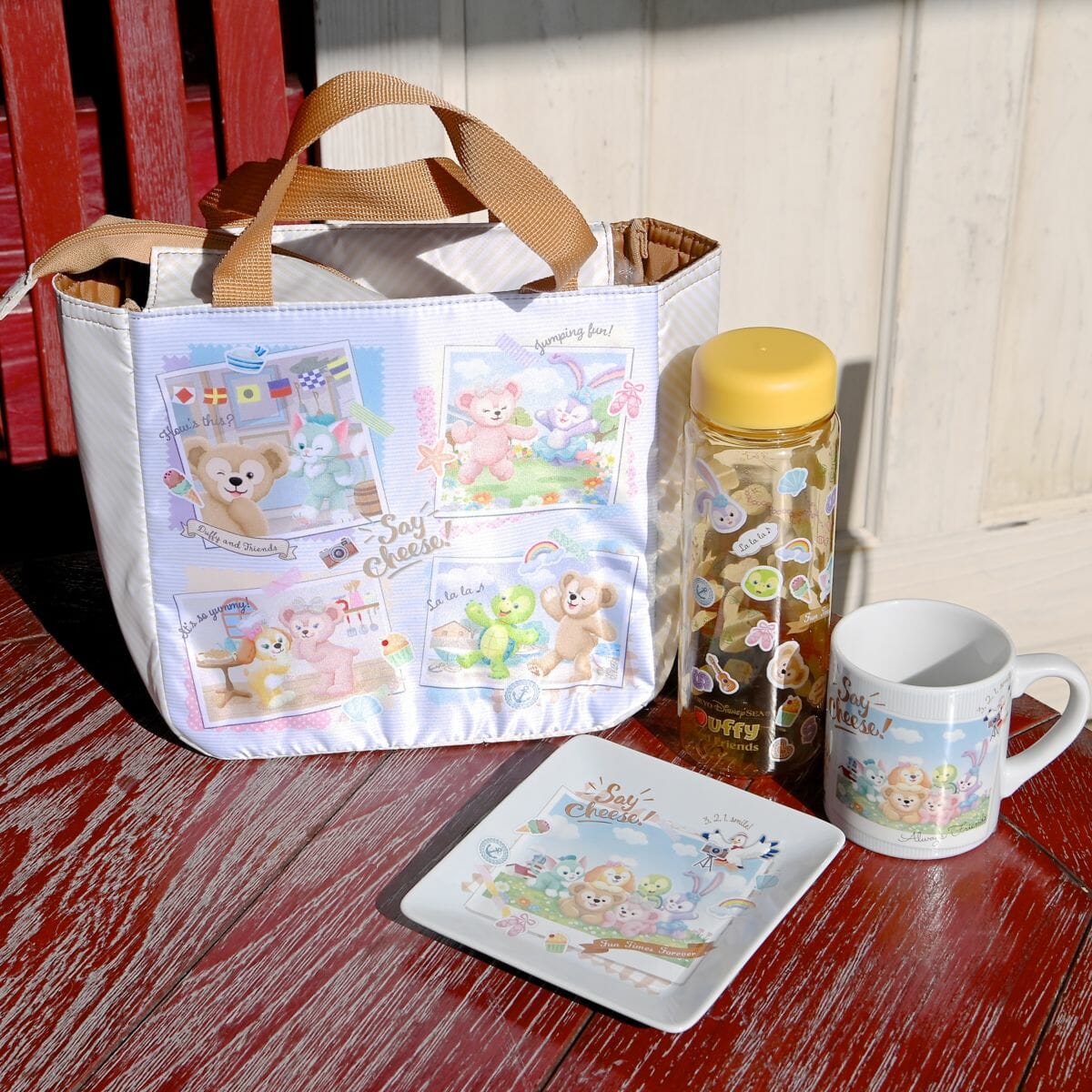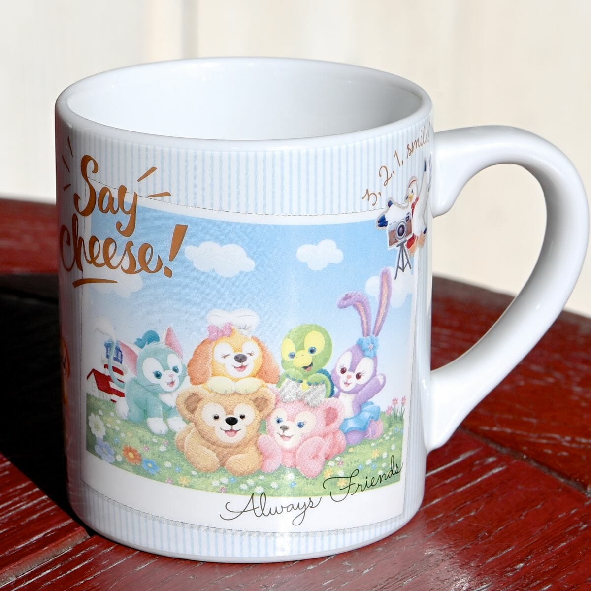 みんなで記念写真を撮る「ダッフィー」「シェリーメイ」「ジェラトーニ」「ステラ・ルー」「クッキー・アン」「オル・メル」がデザインされた新シリーズ「ダッフィー&フレンズのSay cheese!」