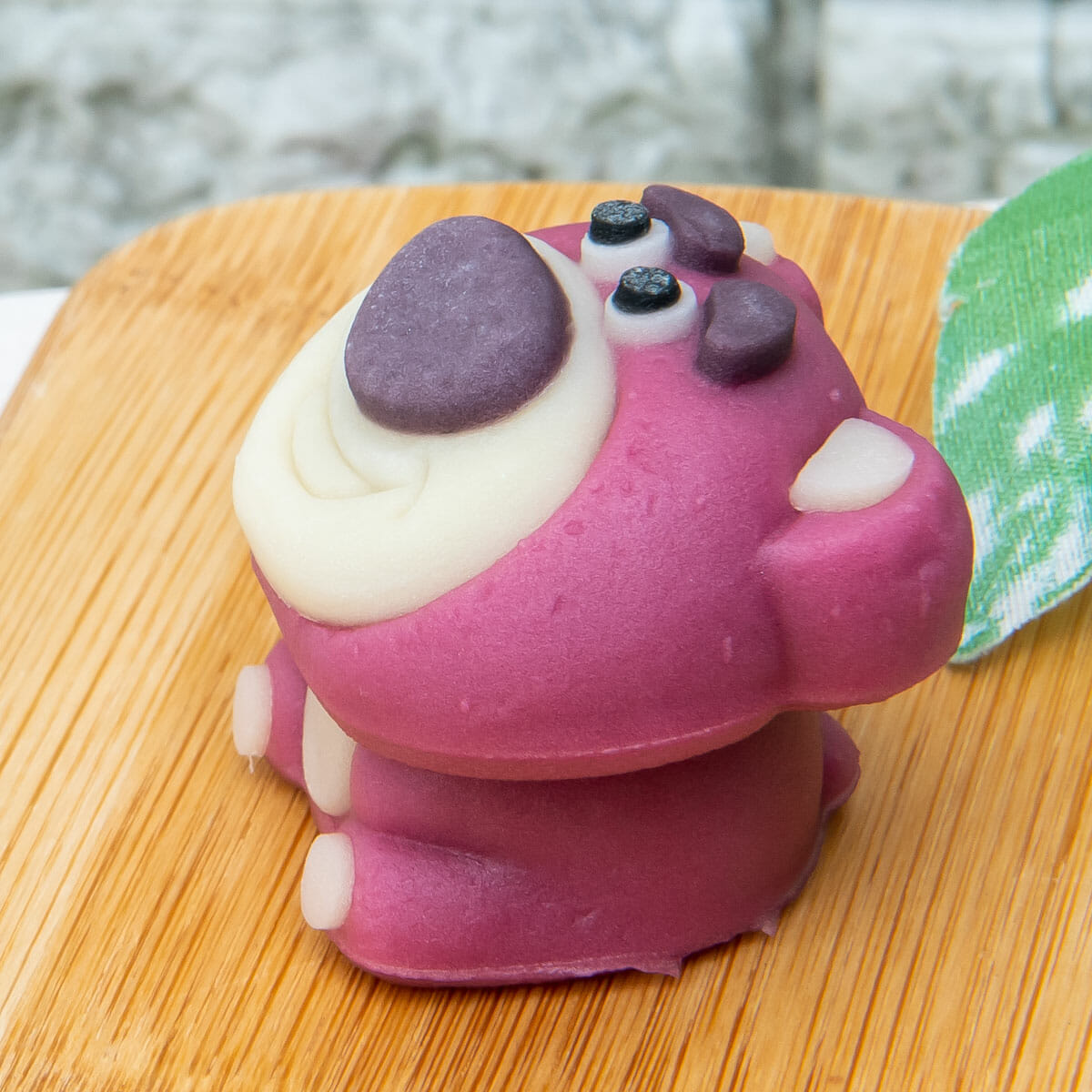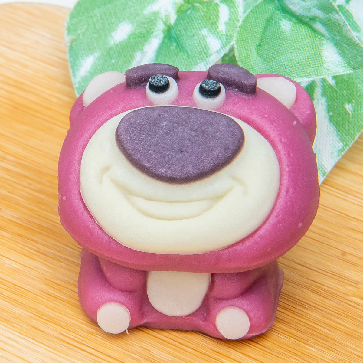 抱きしめるとイチゴのにおいがするテディベアの「ロッツォ」らしく、イチゴの餡いりの和菓子☆
