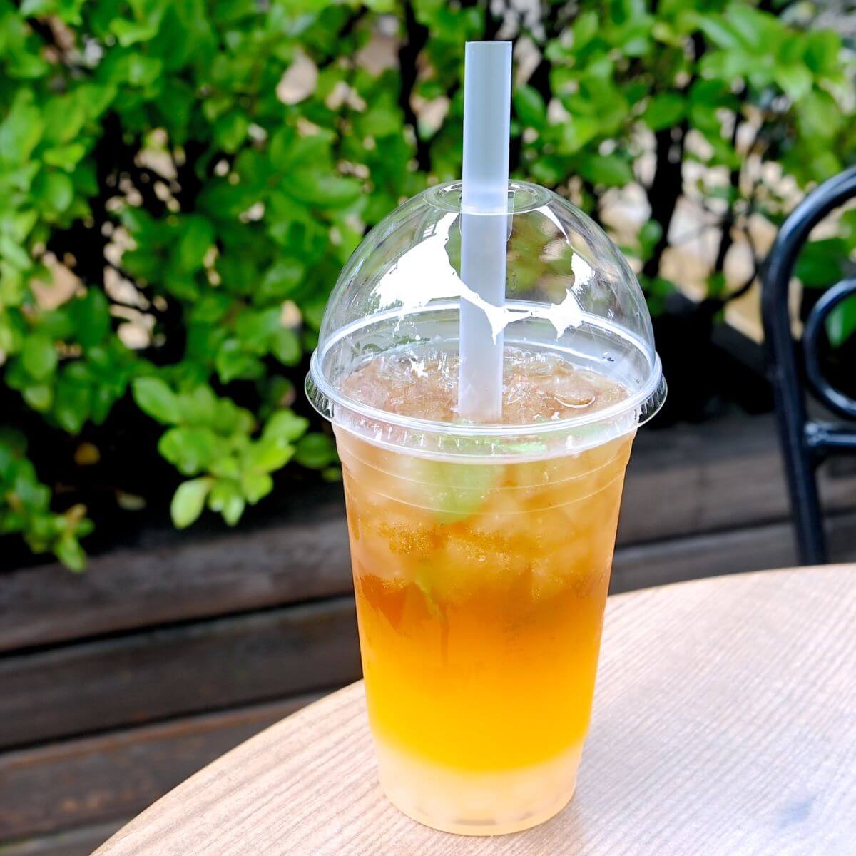 さっぱりタピオカドリンク!ペコスビルカフェ「ライチータピオカティー(オレンジ&ウーロン茶)」