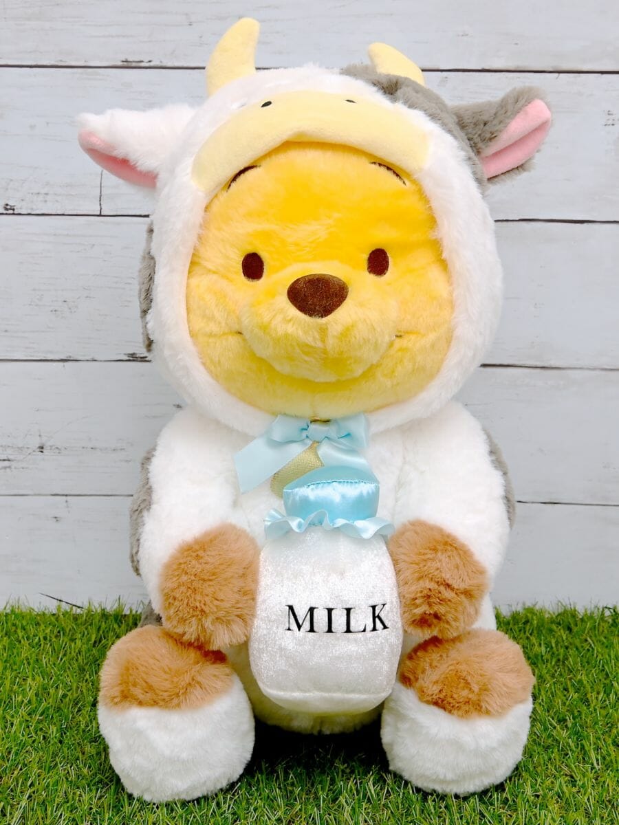 干支コスチュームでウシになりきったプーさんの大きめサイズのぬいぐるみ。