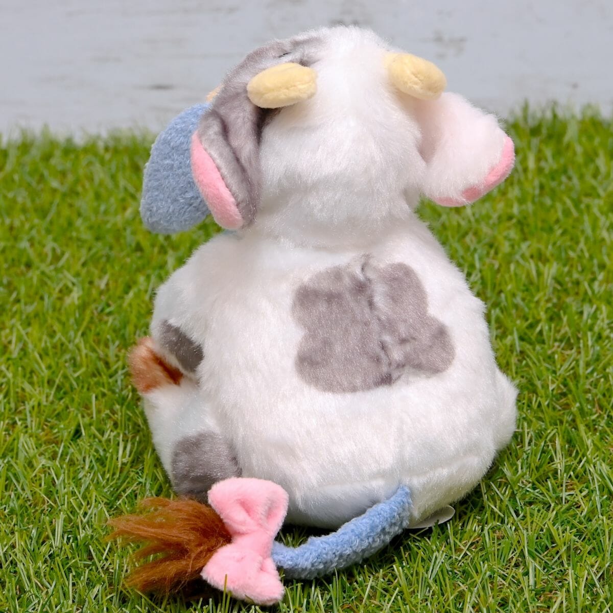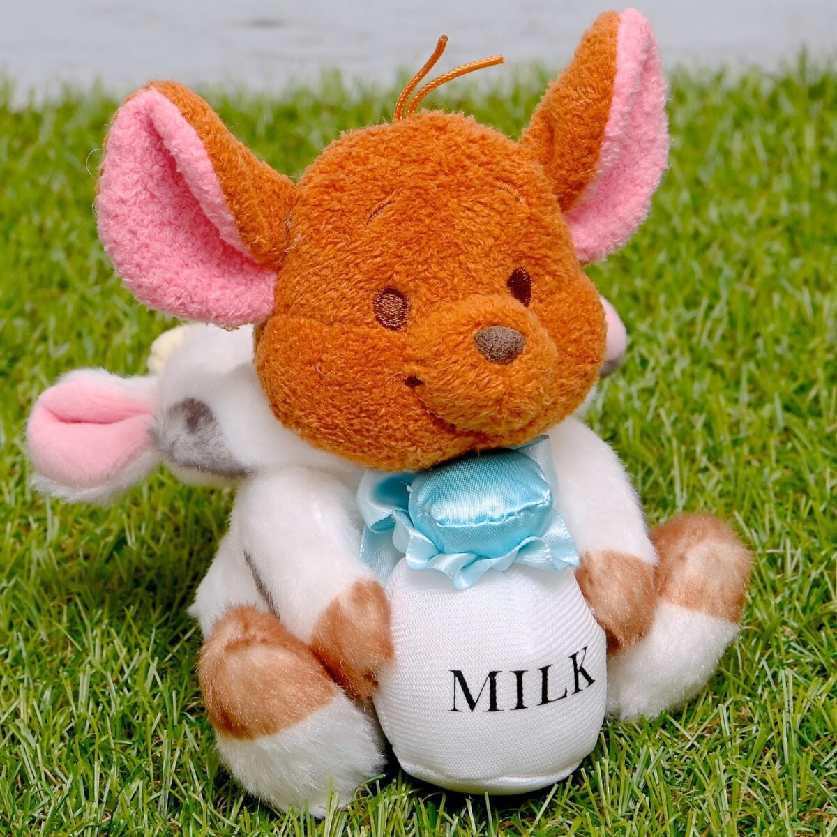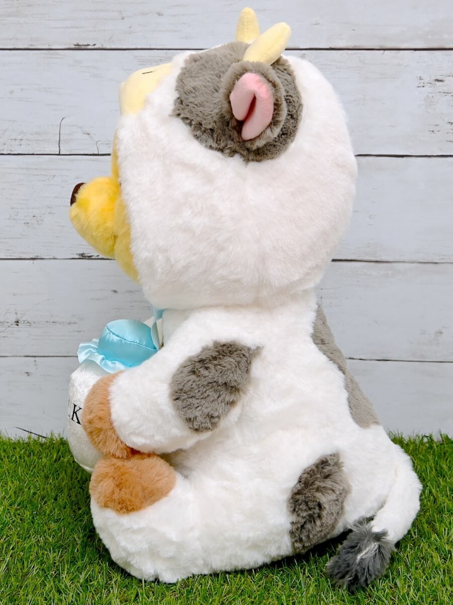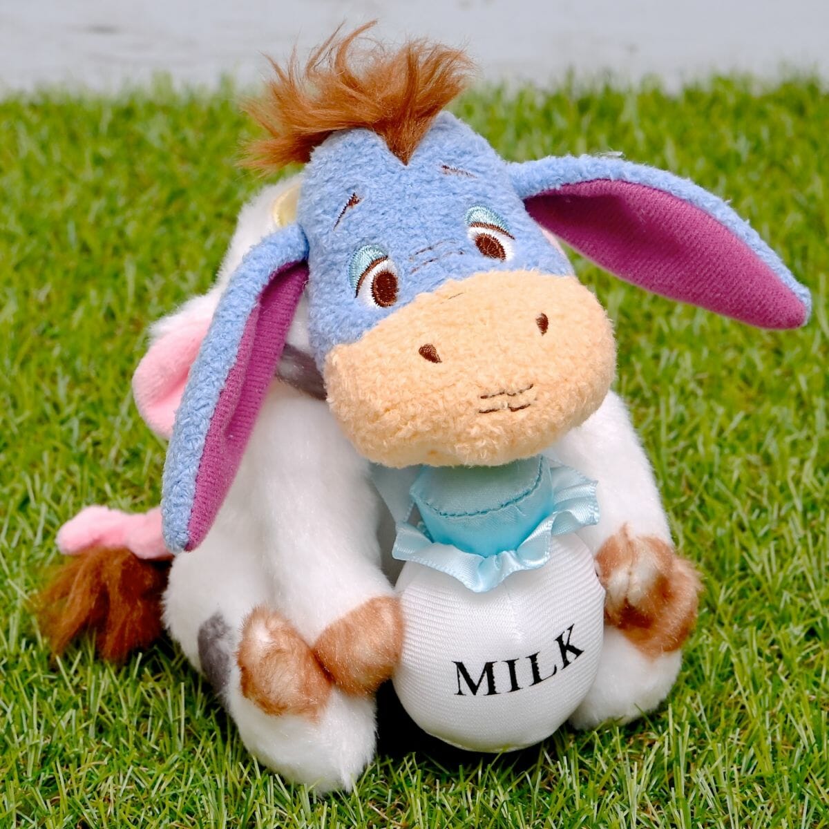 ウシのコスチュームを着たピグレットのぬいぐるみ。