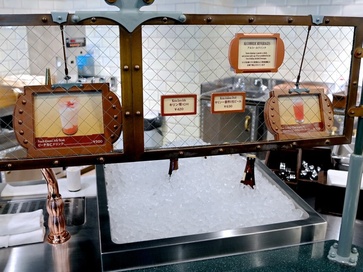ミルク(紙パック)、紅茶、ウーロン茶、ジャスミン茶、アイスコーヒー、アイスウーロン茶、コカ・コーラ、オレンジドリンク、キリンジンジャエールから選択できます。