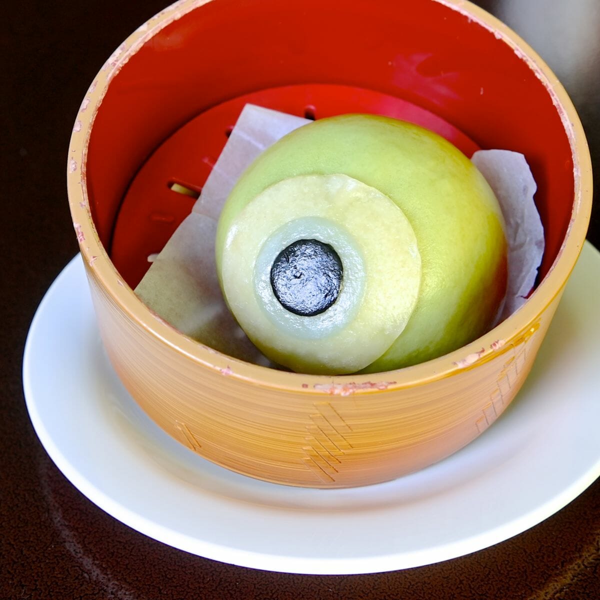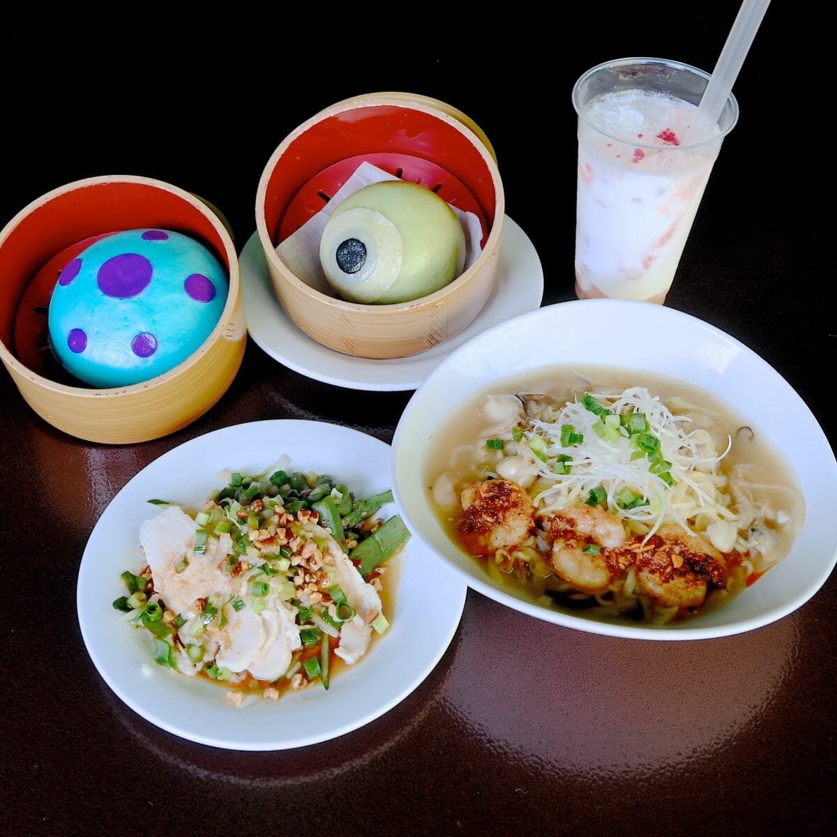 デザートは、ディズニー/ピクサー映画『モンスターズ・インク』シリーズの主人公「マイク・ワゾウスキ」をモチーフにした中華風のカスタードまん。