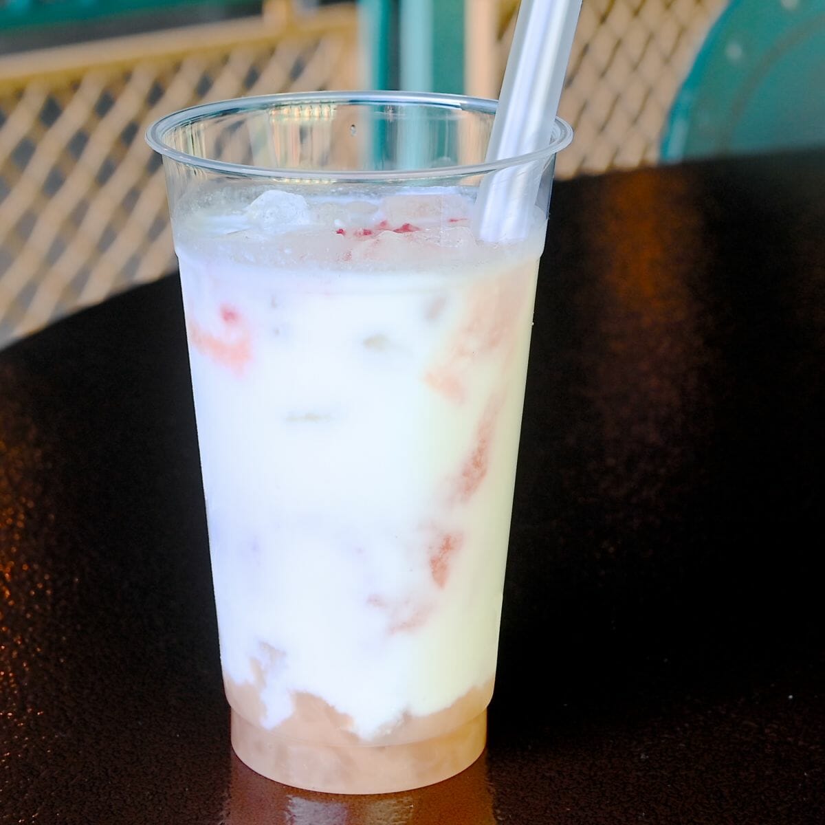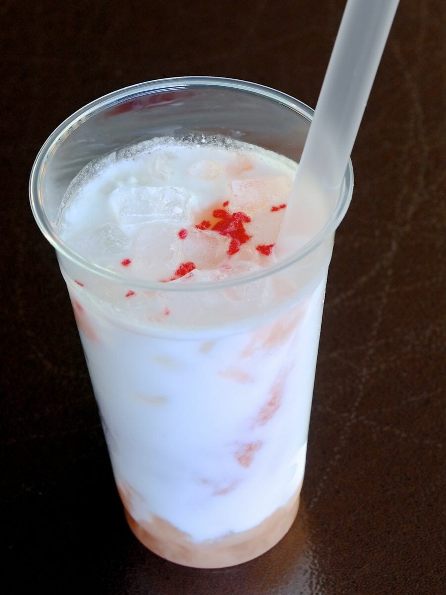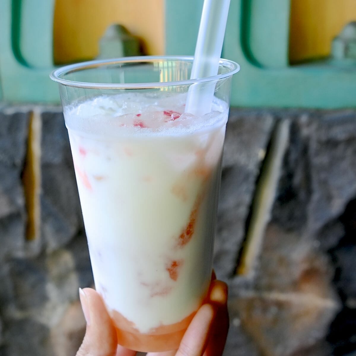 杏仁豆腐とピーチの果肉の食感がたっぷり楽しめる濃厚なドリンクになっています。