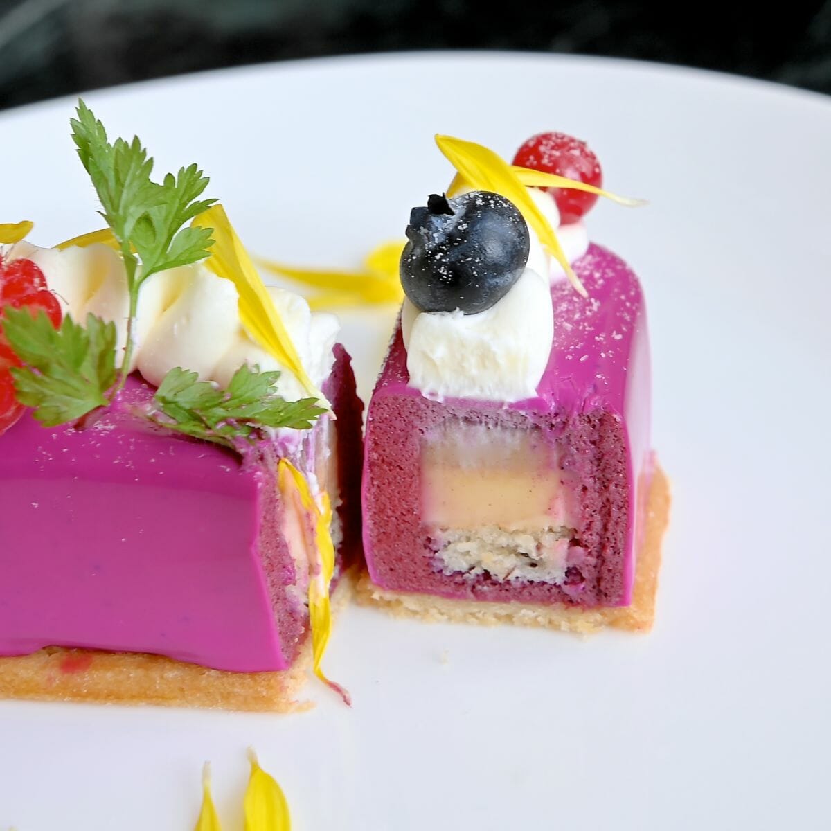 新登場の「ラプンツェル」モチーフのケーキは、ブルーベリーとレモンのムース。