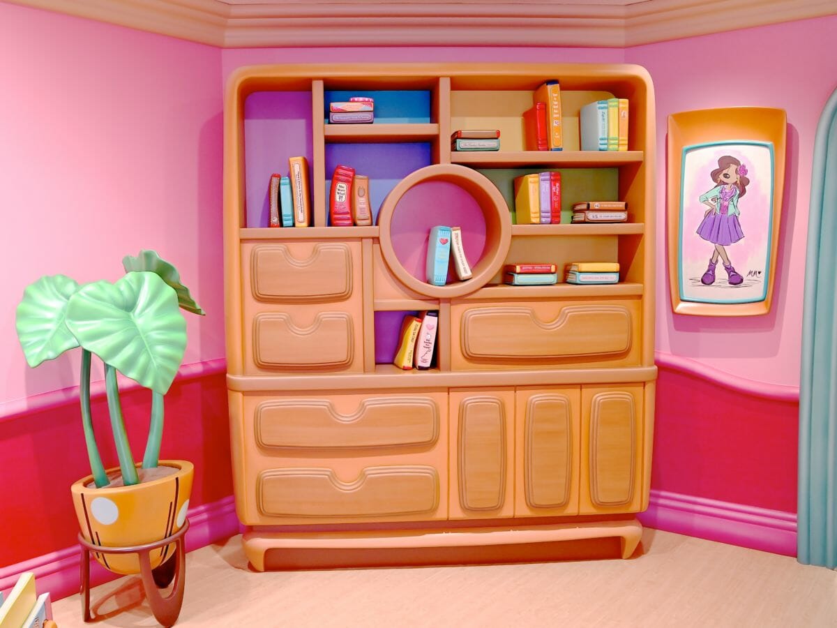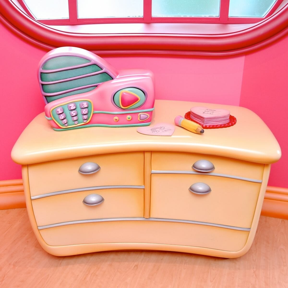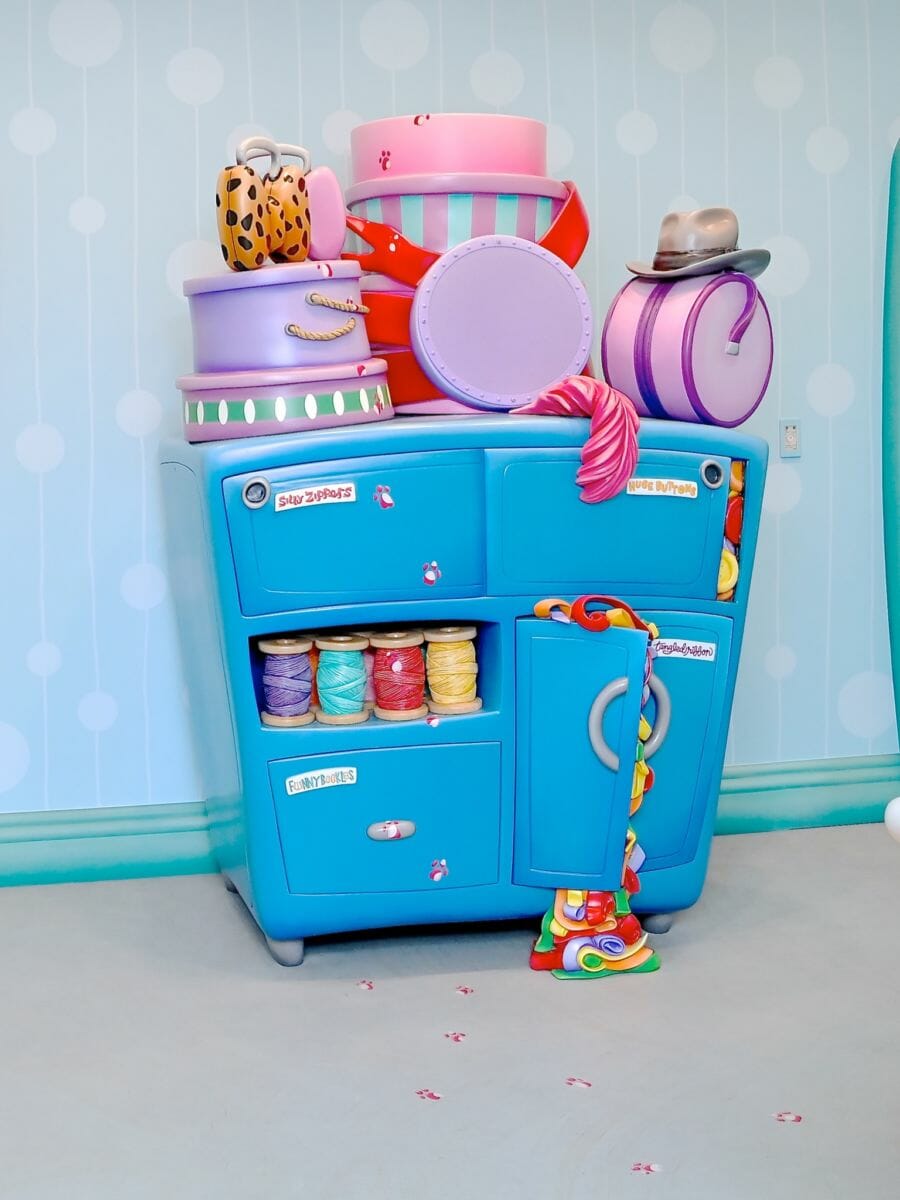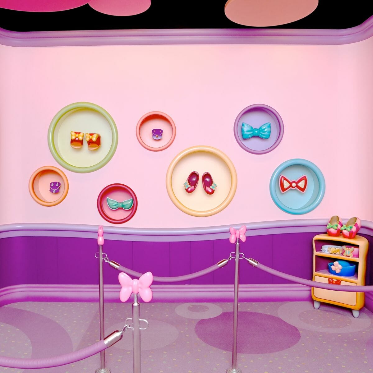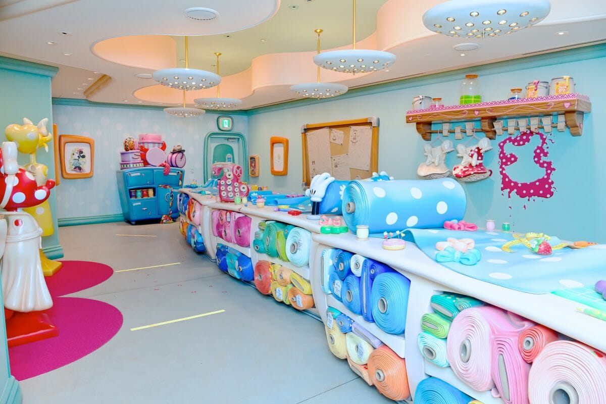 ミニーマウスが制作したリボンや靴、ベルト、アクセサリーなどのファッションアイテムが置かれているアクセサリールームに。