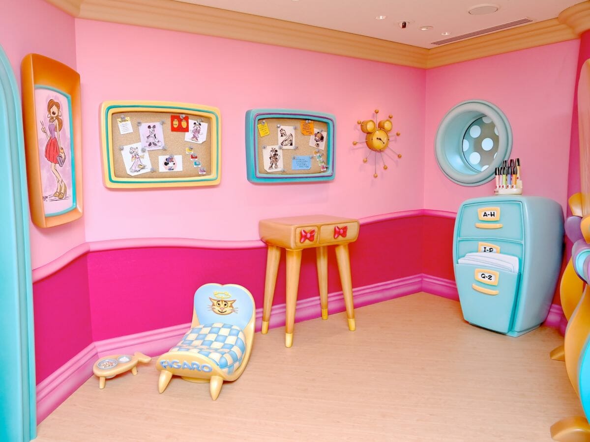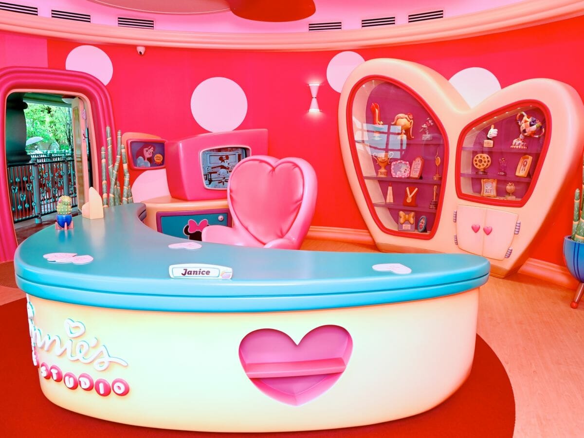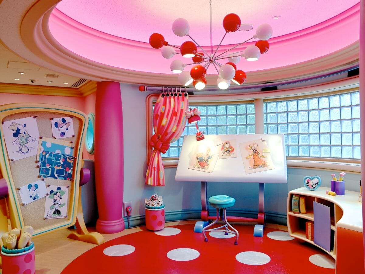 そんな「ミニーのスタイルスタジオ」は、ロビー、オフィス、ワークルーム、アクセサリールーム、ミニーと会えるフォトスタジオで構成されています☆