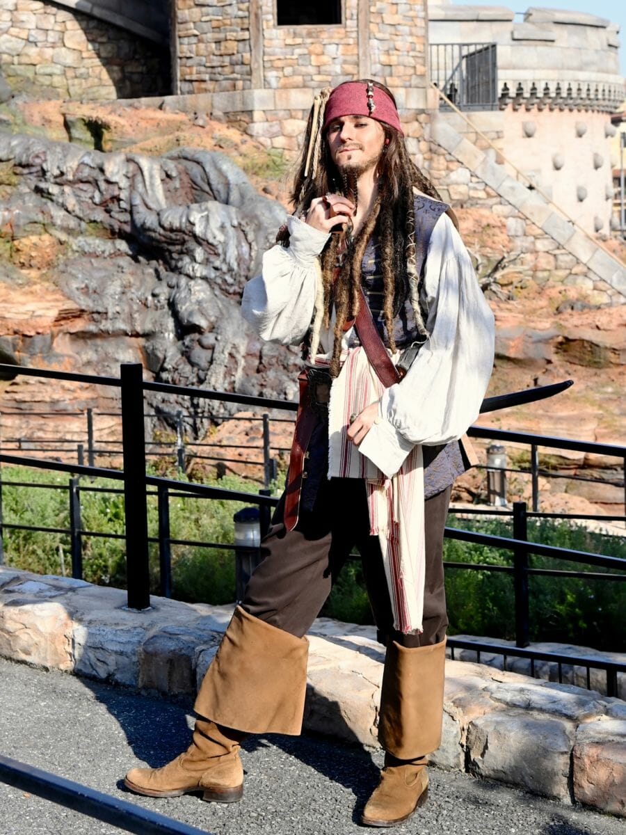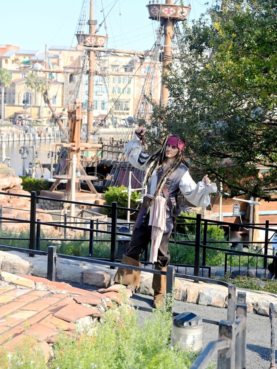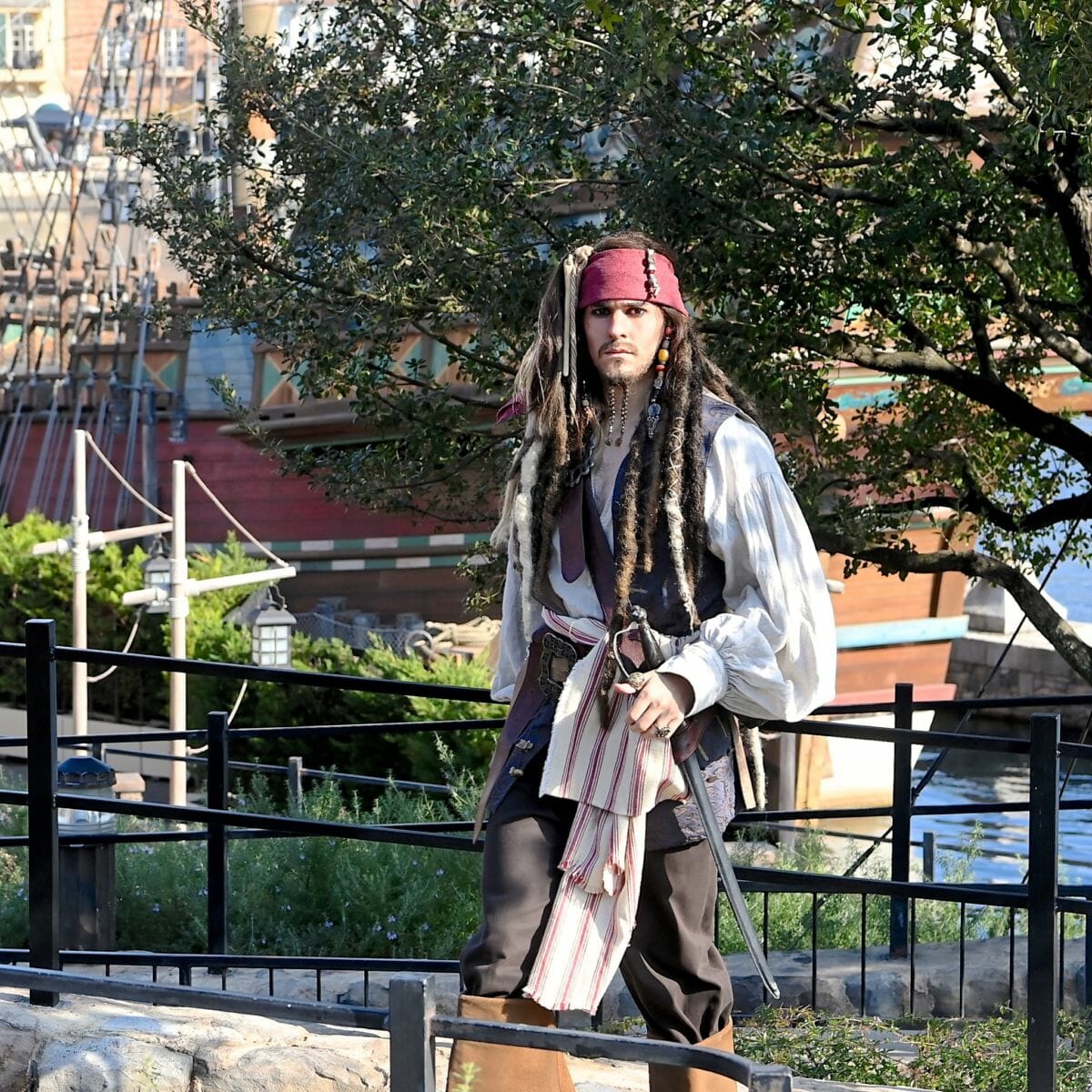 『パイレーツ・オブ・カリビアン』劇中と同じコスチュームでグリーティングに登場する「ジャック・スパロウ」