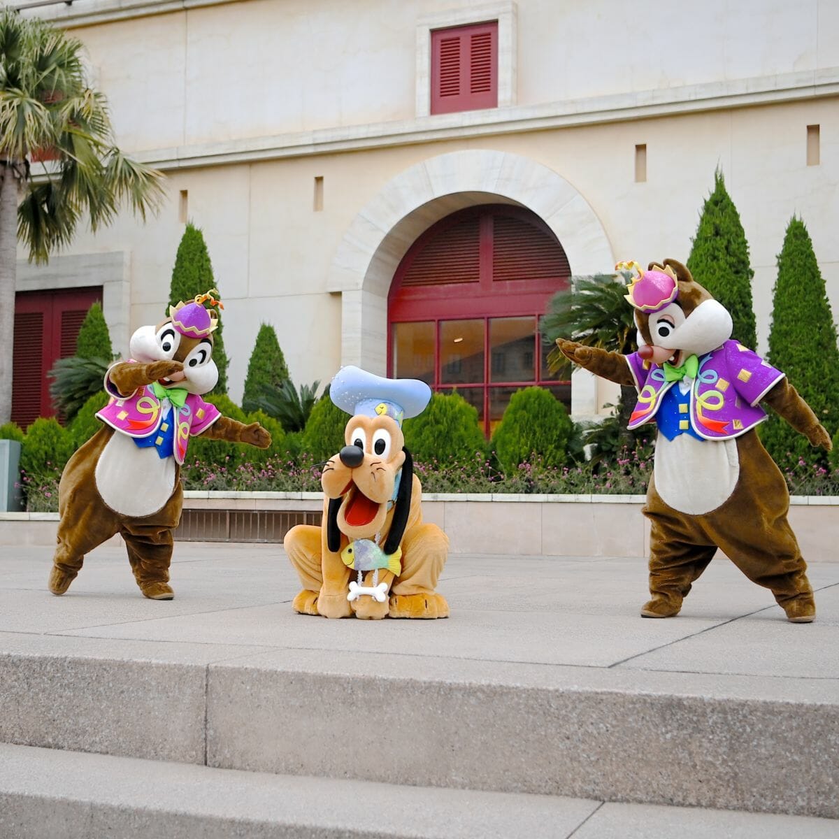 ディズニーシー・プラザでのドナルドダック、グーフィー、プルート、チップ&デールとのグリーティング。