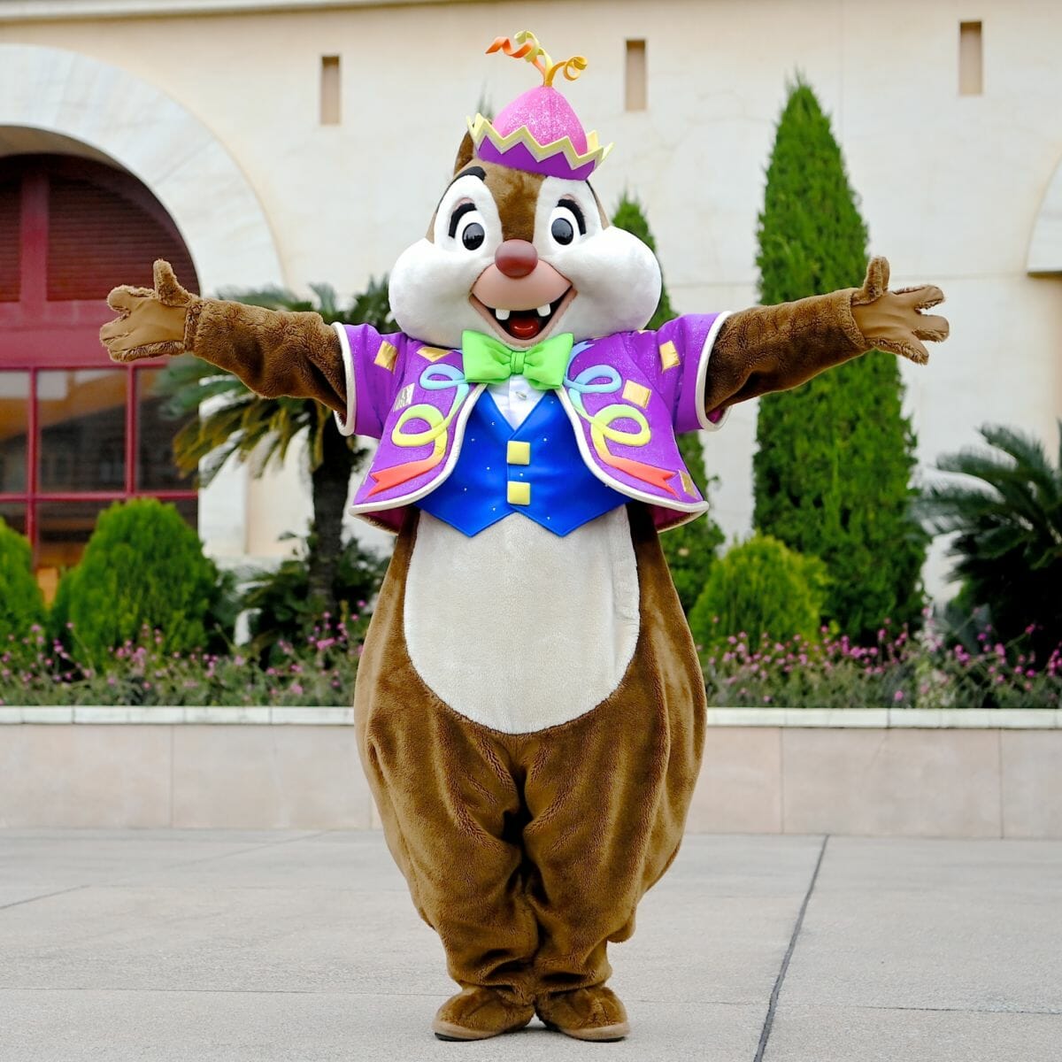 ディズニーシー・プラザの音楽に合わせ指揮を取るチップと、
