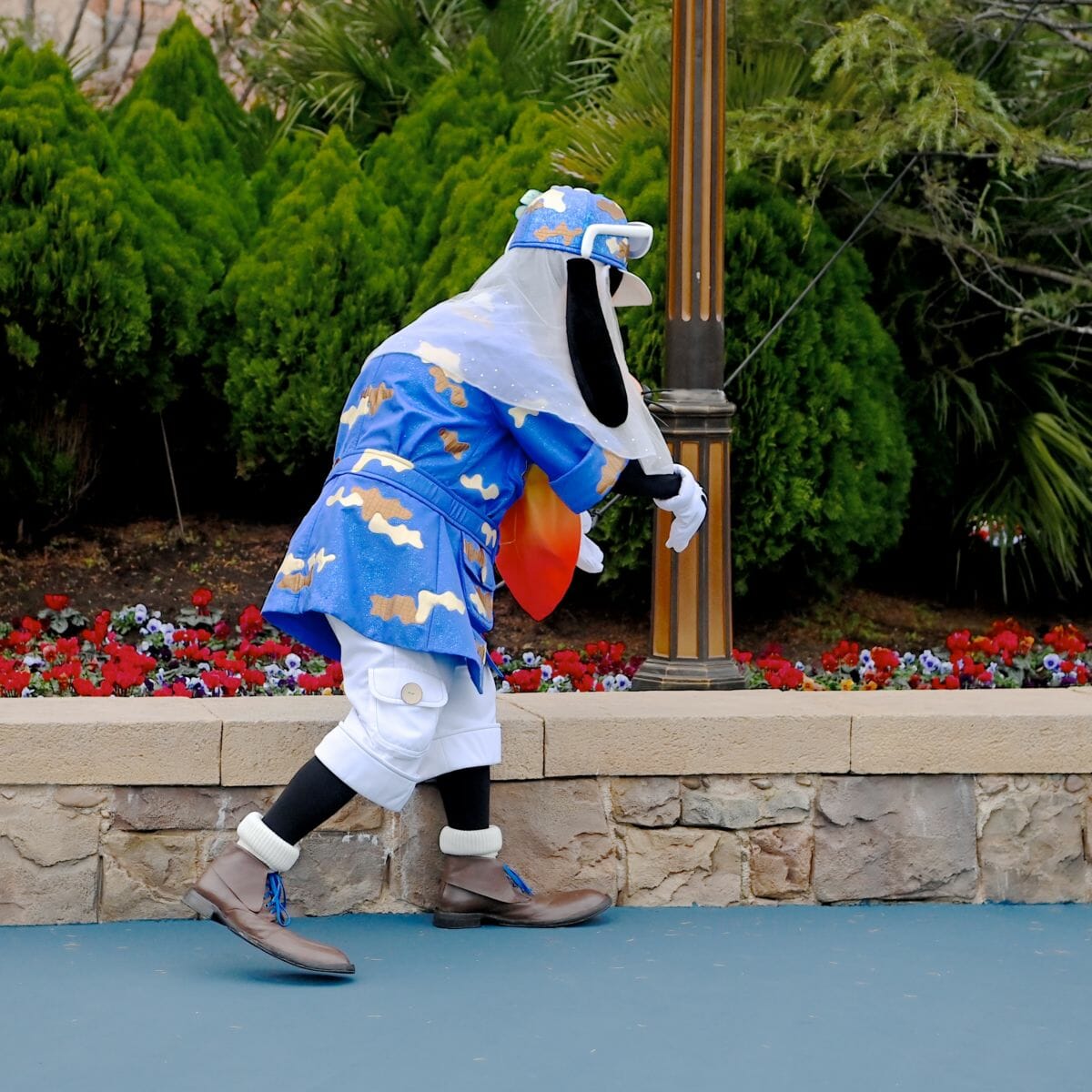 東京ディズニーシー5周年のショー『オーバー・ザ・ウェイブ』に登場していたコスチュームで実施されているご挨拶。