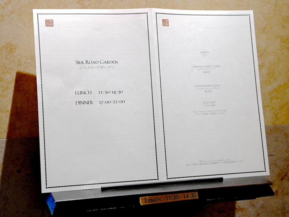 今回はそんなシルクロードガーデンで提供されている“クリスマス2020”ランチコースを紹介します。