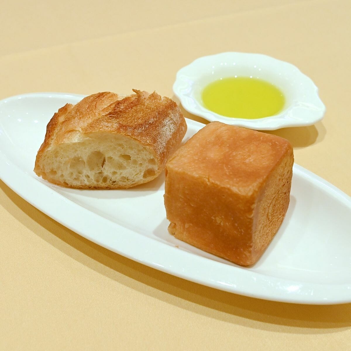パンは、ライ麦のバケットとブリオッシュをイメージしたパンの2種類☆