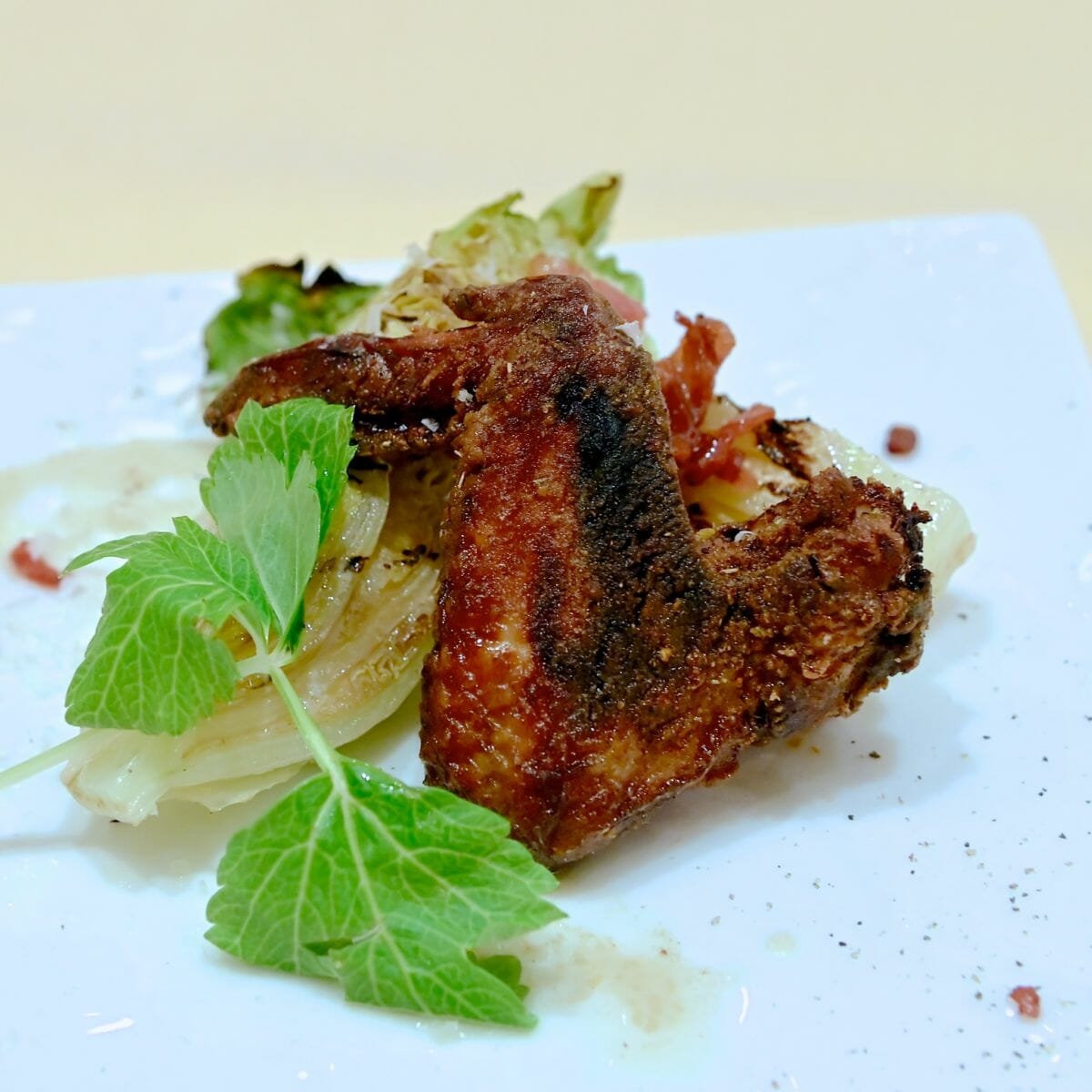 ひな鶏のバッファロー・ウィング ウェッジサラダとブルーチーズソース アップ