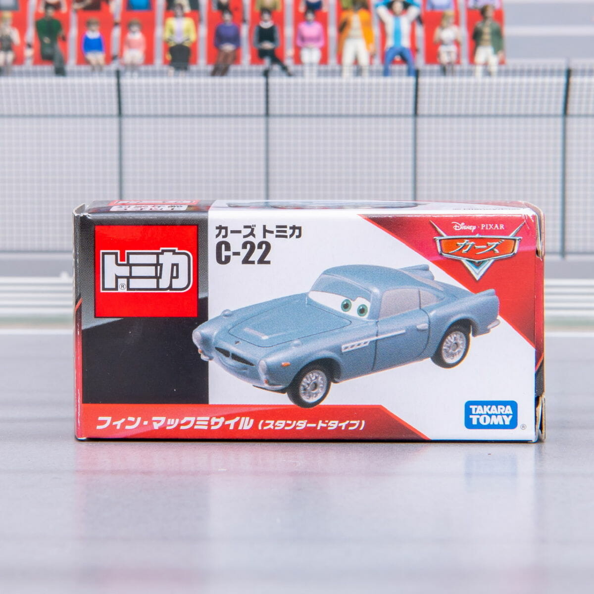 『カーズ2』で大活躍する「フィン・マックミサイル」のカーズトミカ。