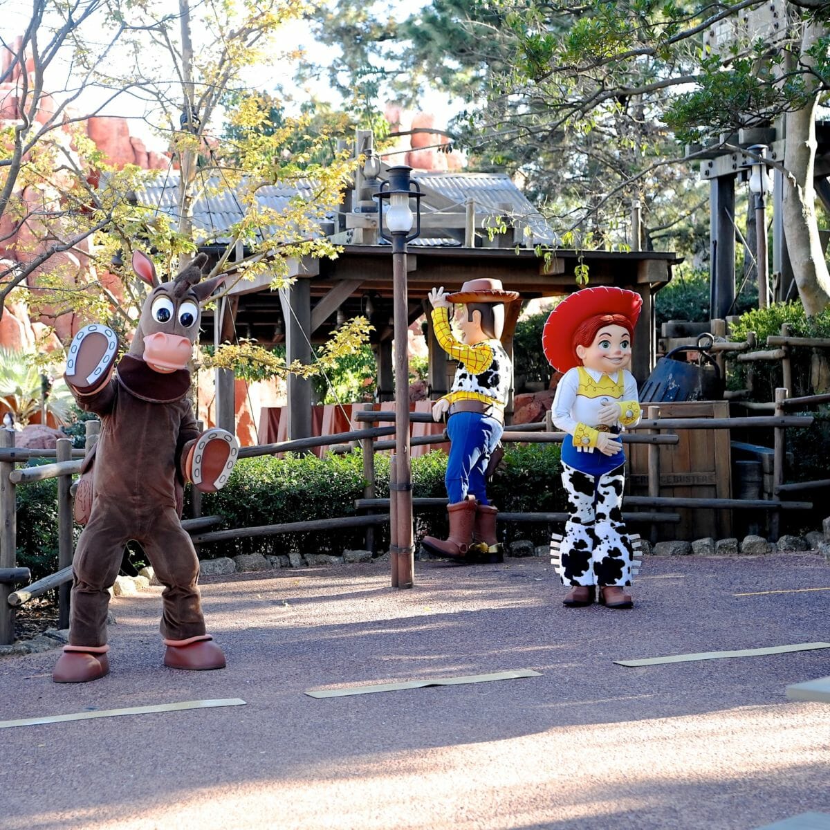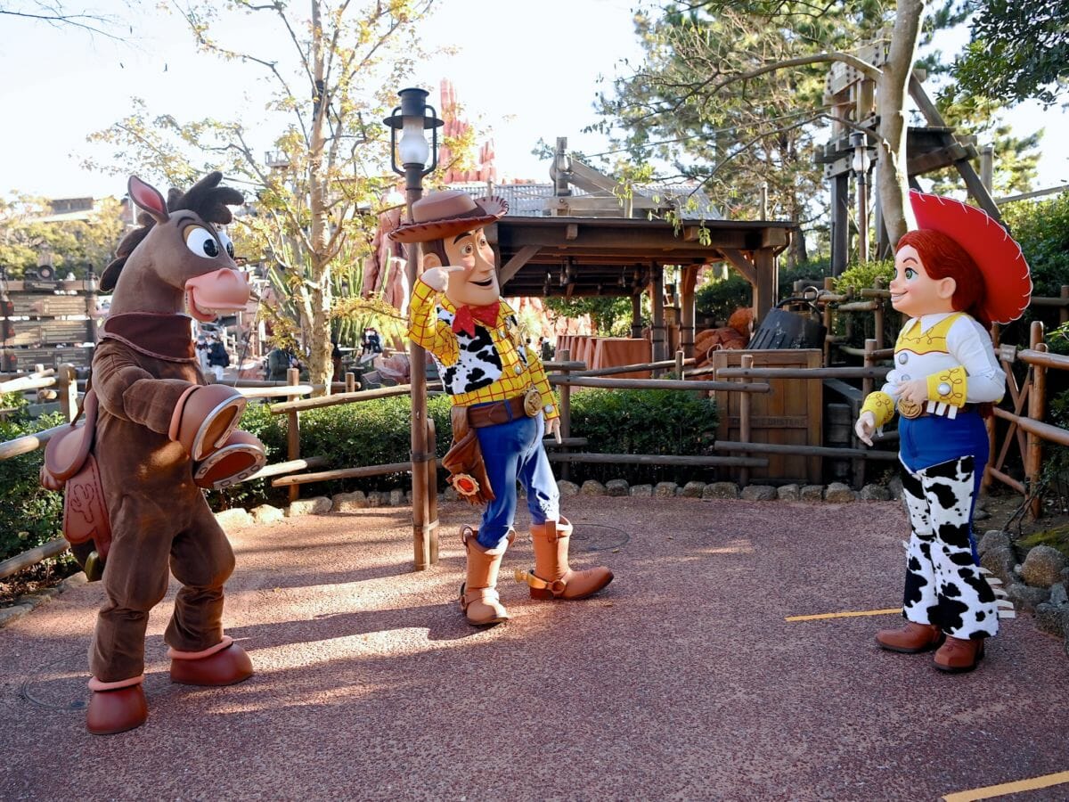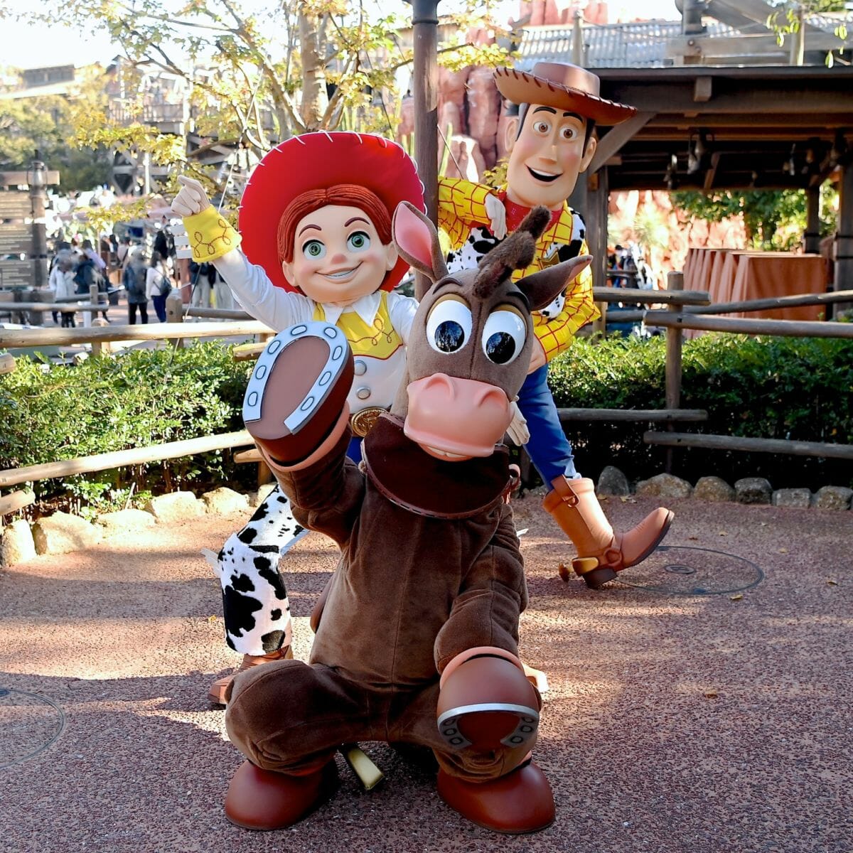 今回は東京ディズニーランド/ウエスタンランドでの、ディズニー&ピクサー映画『トイ・ストーリー』の主人公「ウッディ」と『トイ・ストーリー2』から登場したカウガール「ジェシー」、ウッディの愛馬「ブルズアイ」とのグリーティングを紹介します☆