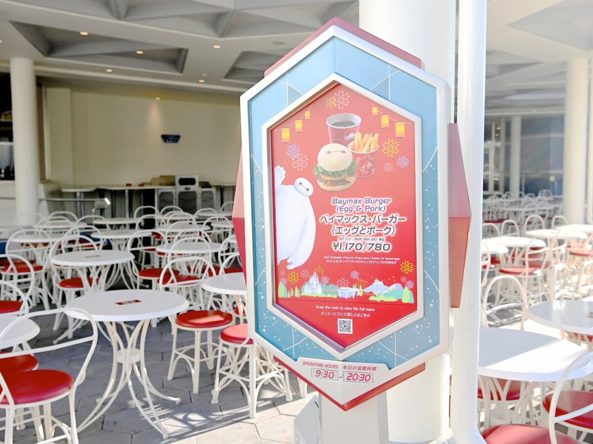 その目の前にあるレストラン「トゥモローランド・テラス」では、そんな「ベイマックス」をモチーフにしたデザートドリンクに加え、ベイマックス・バーガーの販売がスタート!