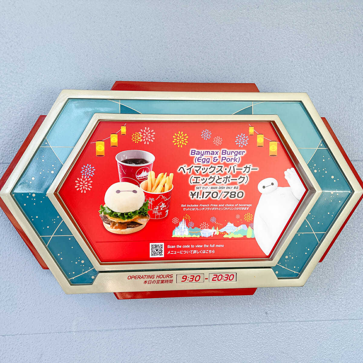 ベイマックス・バーガー形ランチケースが付けられる!トゥモローランド・テラス「ベイマックス・バーガー(エッグとポーク)」セットの紹介でした。