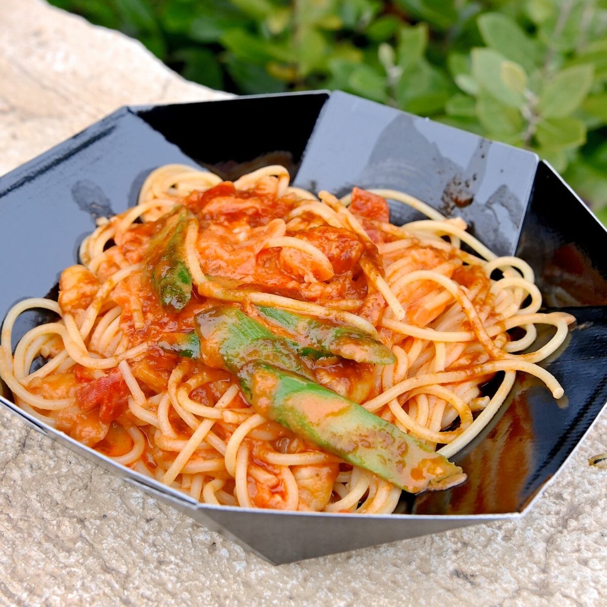 「ザンビーニ・ブラザーズ・リストランテ2020冬2021春シェフのおすすめパスタ」は、シュリンプとアスパラガスのトマトクリームソース。