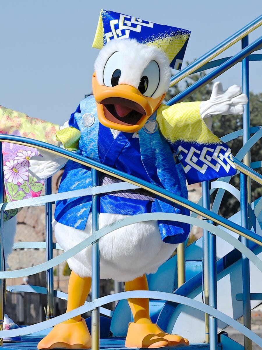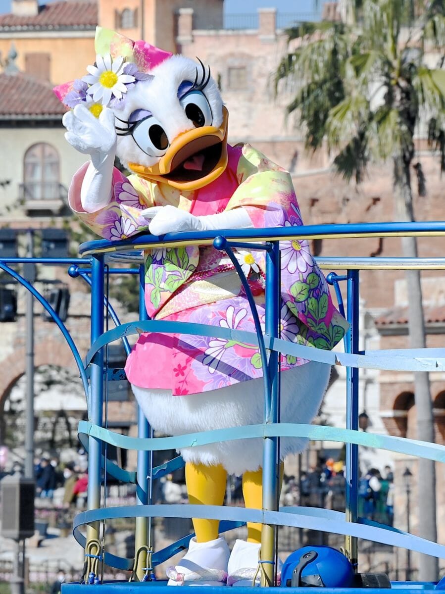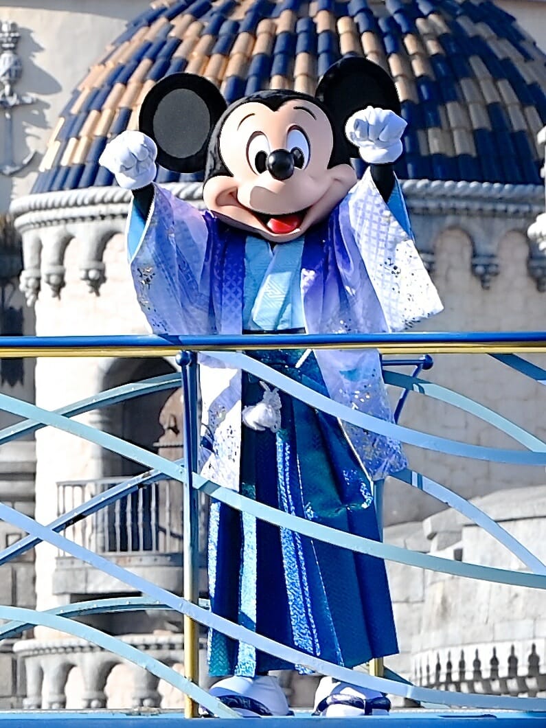 華やかな和装コスチュームで登場し新年のご挨拶をしてくれるミッキーマウスたちのハーバーグリーティング☆