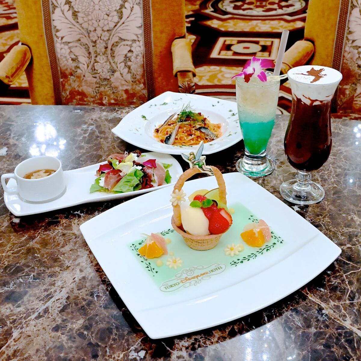 東京ディズニーランドホテルらしく、ディズニー映画『ピーター・パン』の人気キャラクター「ティンカー・ベル」をイメージしたパスタセットとスペシャルドリンクが期間限定で登場!