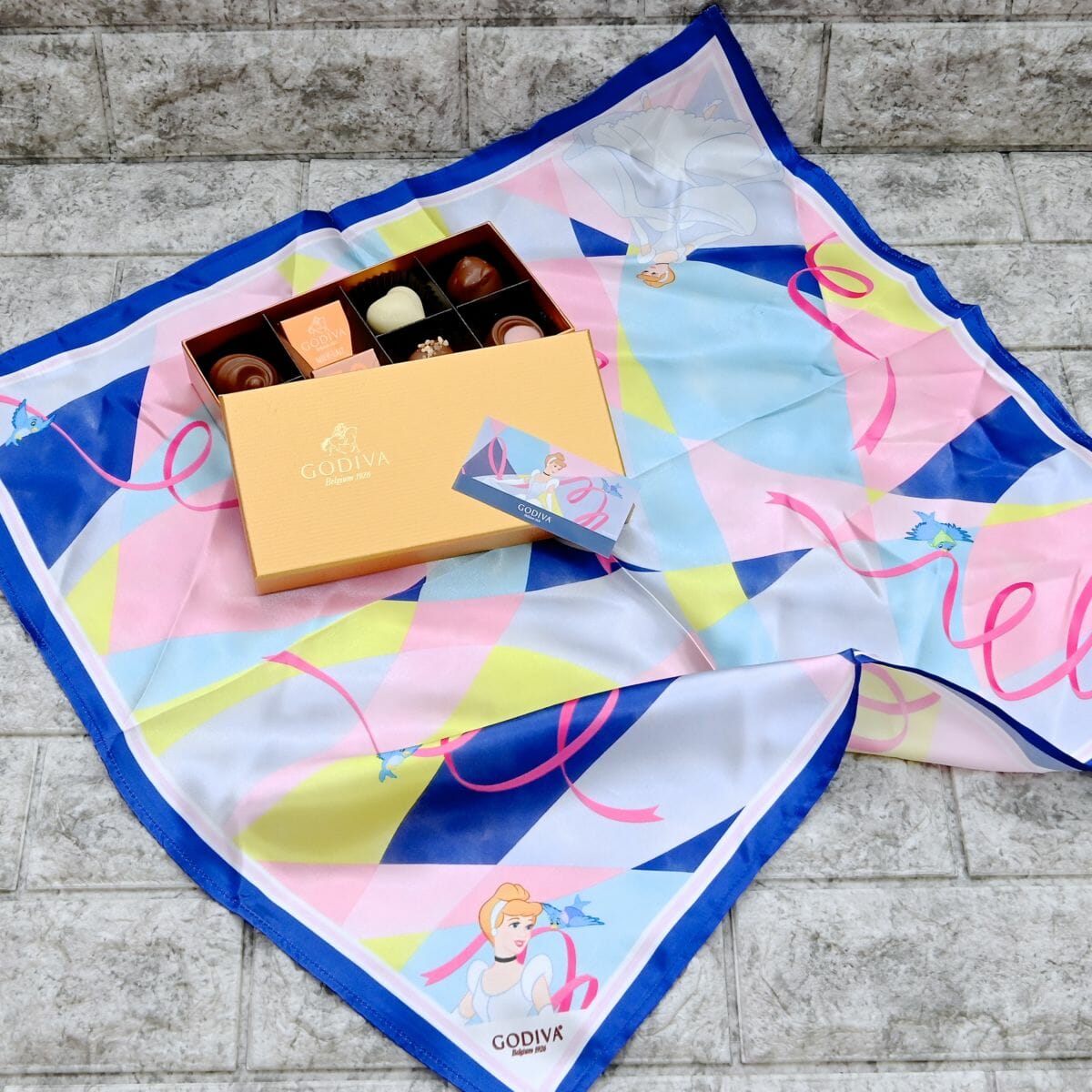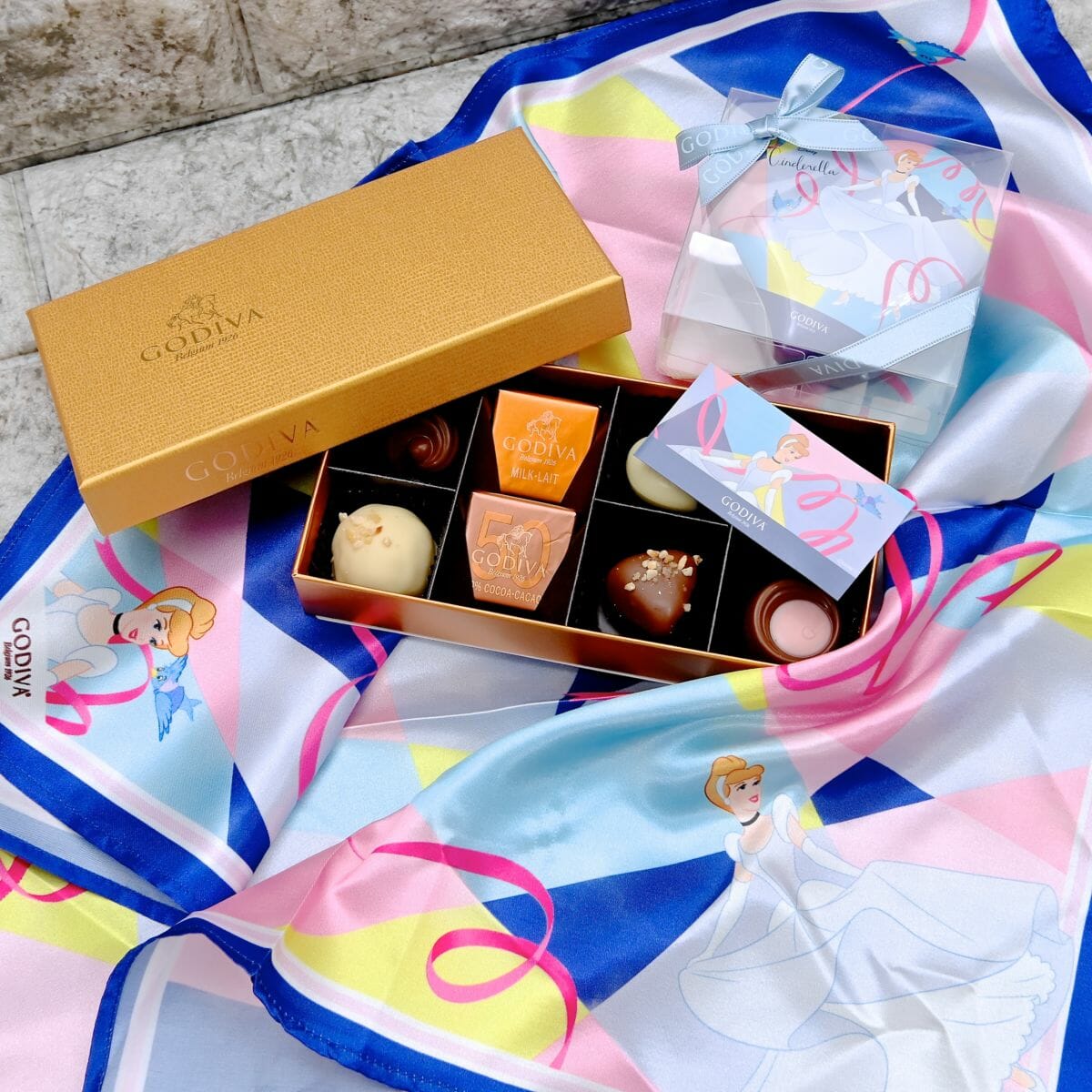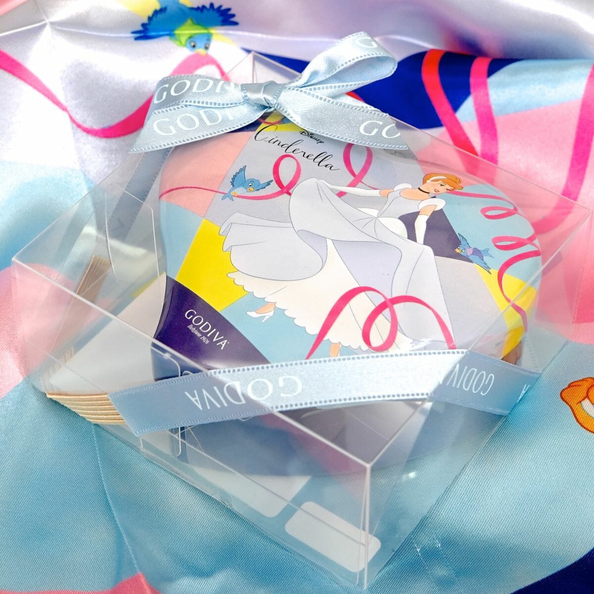 「ベル」同様、今回のために描き起こした「シンデレラ」デザインのスカーフで包まれたチョコレート。