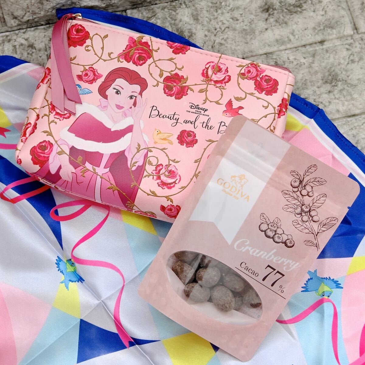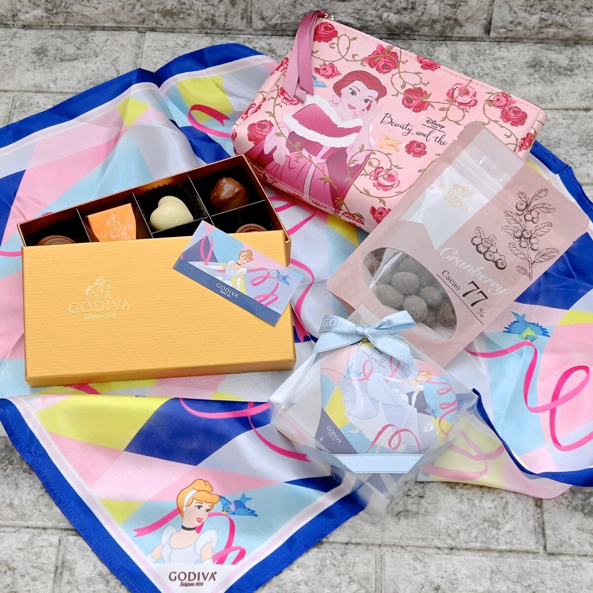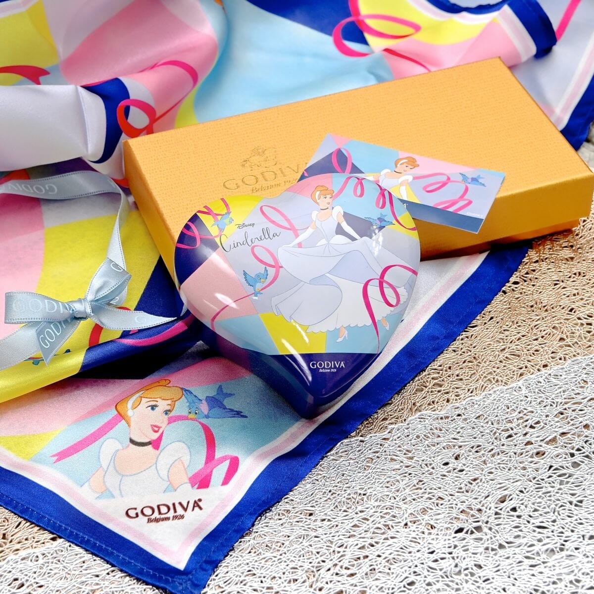 「ベル」同様、今回のために描き起こした「シンデレラ」デザインのスカーフで包まれたチョコレート。