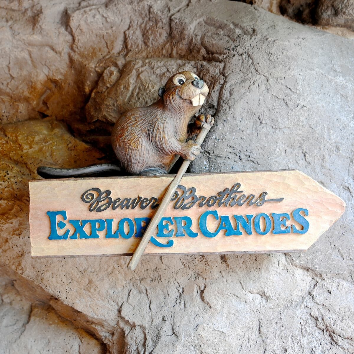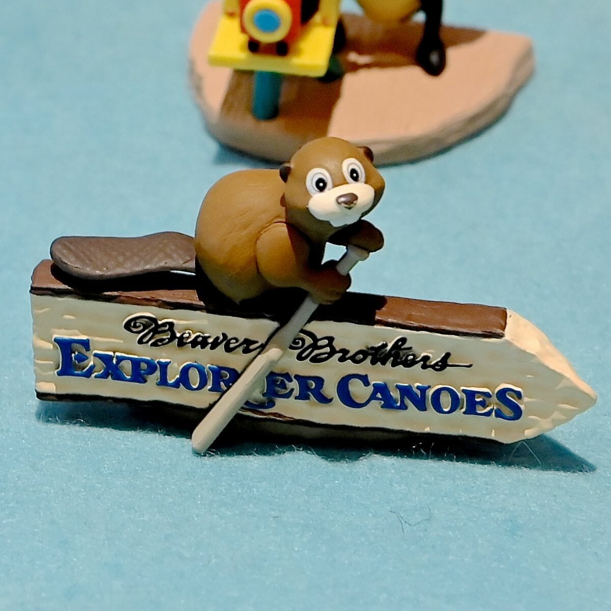 ビーバーブラザーズのカヌー探検(Beaver Brothers Explorer Canoes)の看板が再現されたフィギュア。