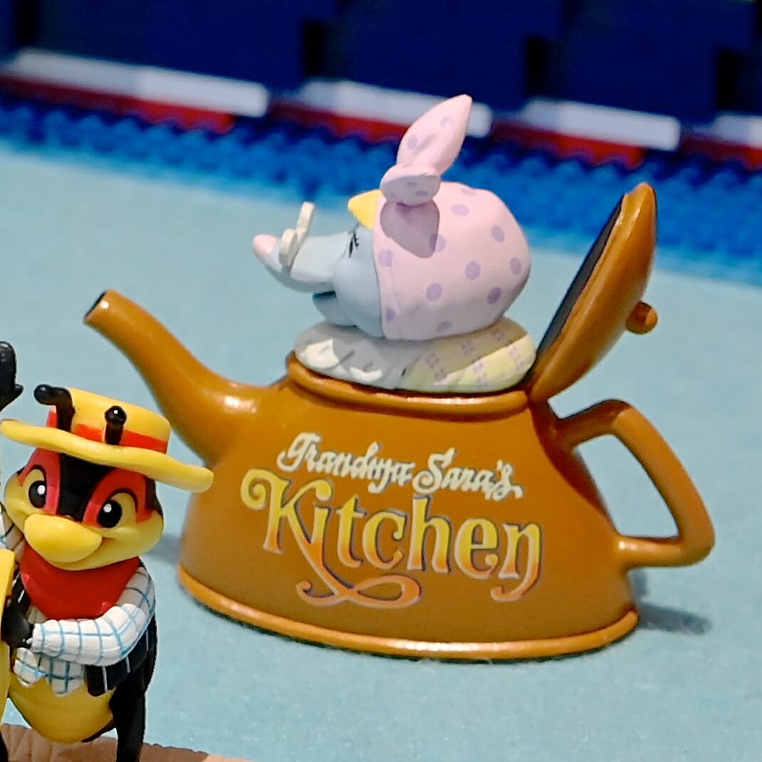 その入り口にあるジャコウネズミのサラおばあちゃんの看板が再現されたフィギュア。