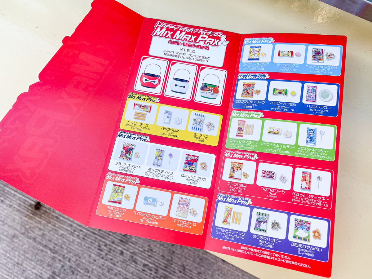 全8種類のお菓子パックから、好きなものを3つ選んでコンテナに詰めることが出来ます。