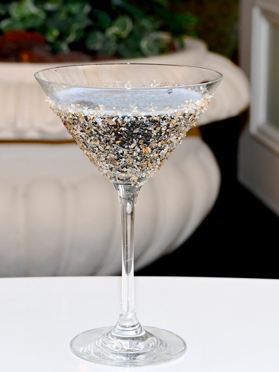 野獣のコスチュームをモチーフにしたブルーのドリンクとキラキラ輝くシュガー。