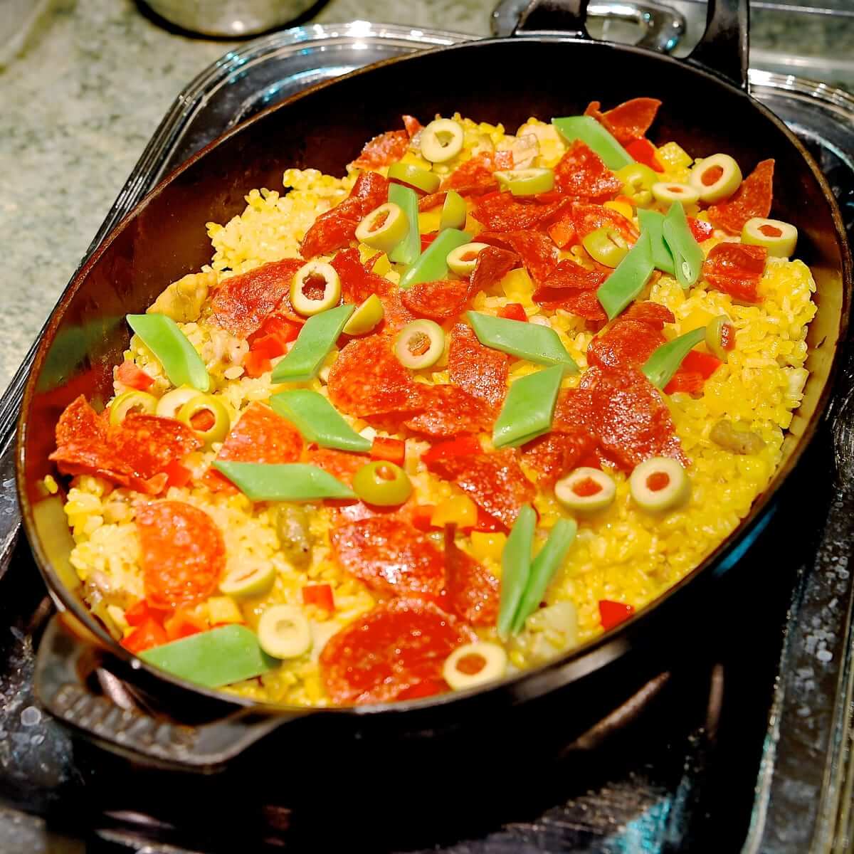 パエリア風のチキンピラフ。